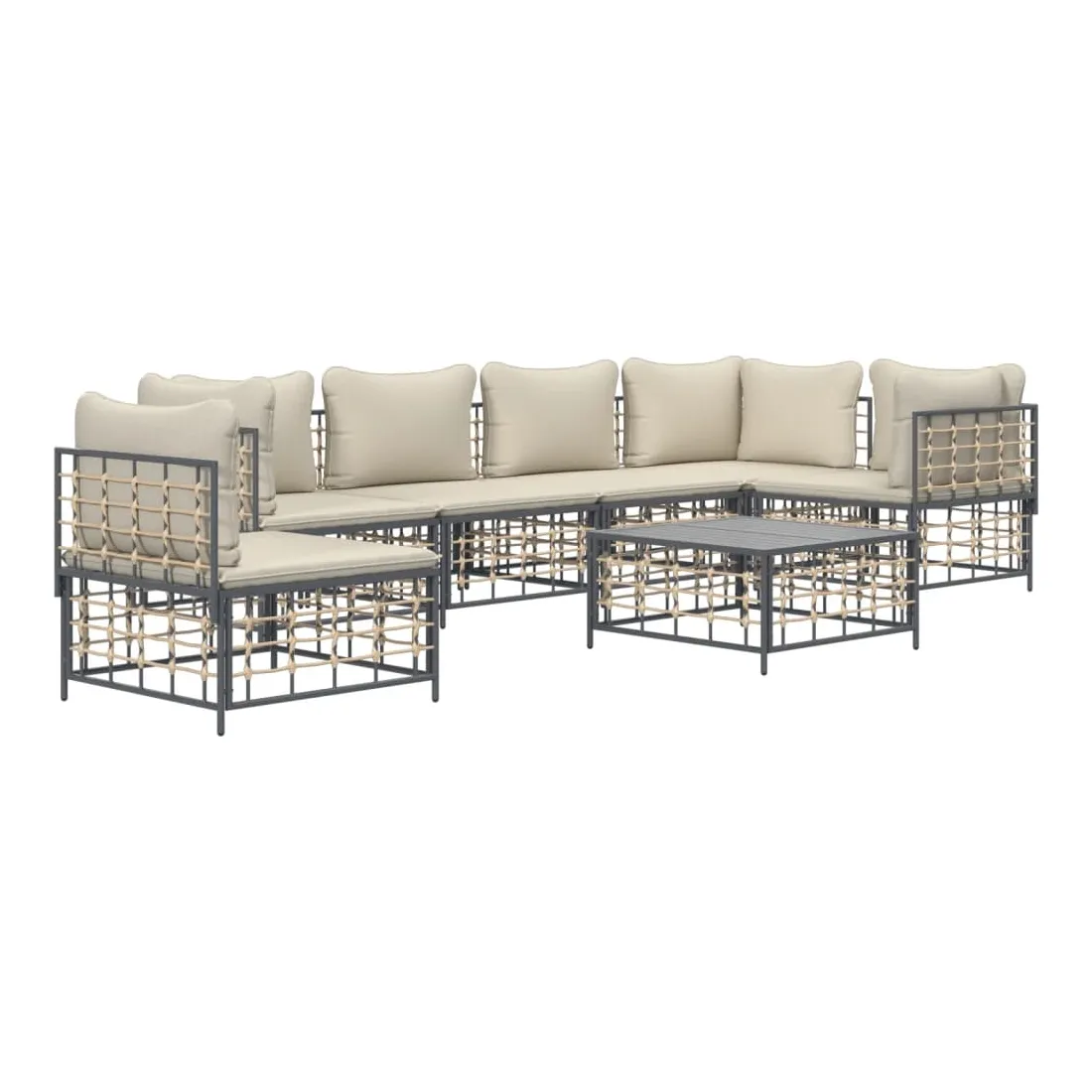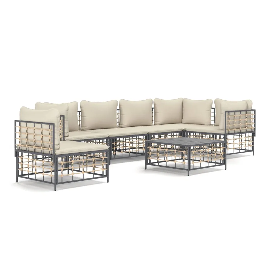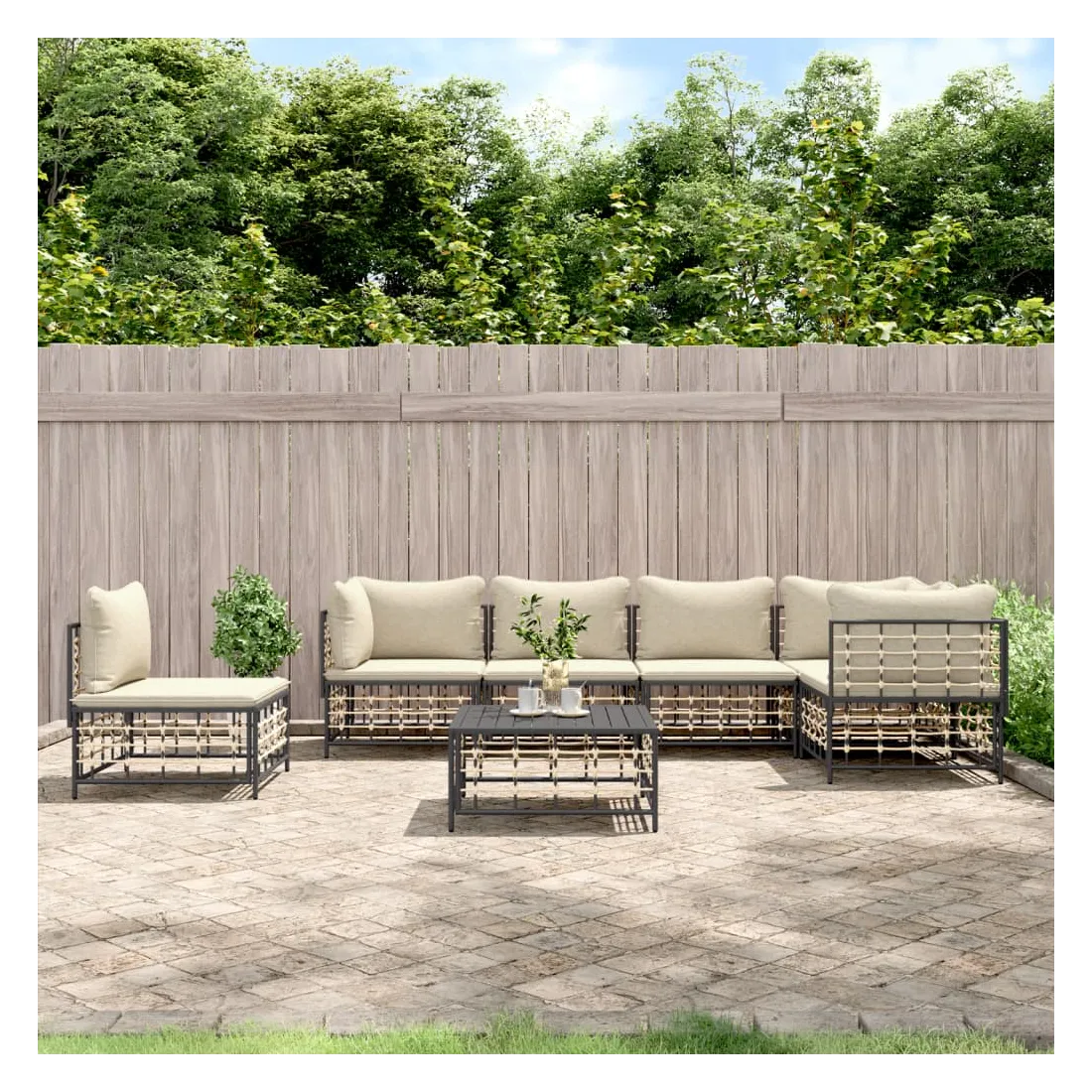 Salon de jardin 7 pcs avec coussins anthracite résine tressée