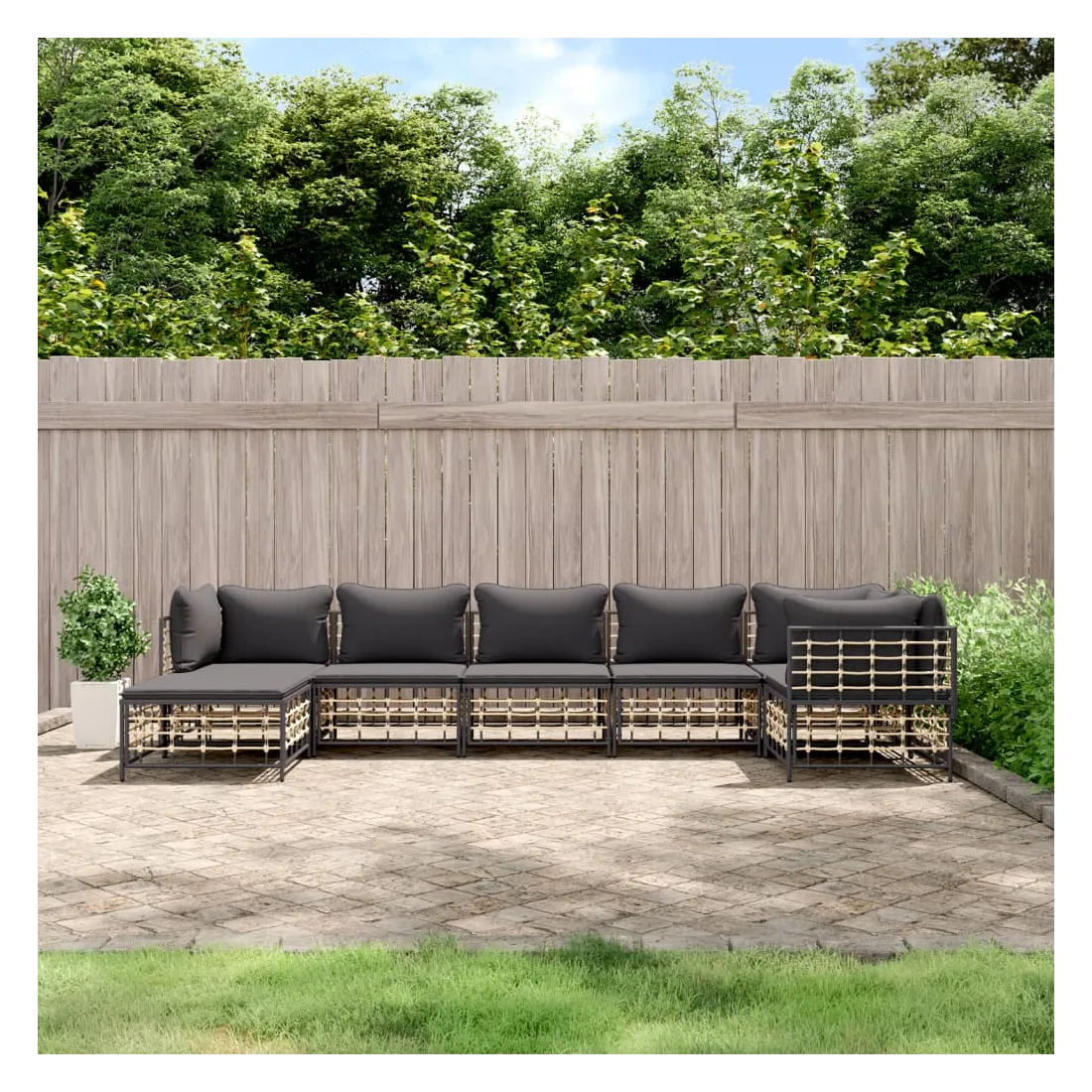 Profitez d'un moment de café confortable dans votre espace extérieur avec cet ensemble de salon de jardin ! C'est un complément parfait à votre jardin et à votre terrasse, créant une impression durable ! Matériau résistant aux intempéries : le poly rotin est résistant aux intempéries et facile à nettoyer. Il reste beau à l'extérieur pendant une longue période de temps. Il est plus économique que d'autres matériaux, tout en offrant une excellente qualité, une commodité et un aspect esthétique.Cadre robuste et stable : le cadre en acier de l'ensemble de salon assure robustesse et stabilité.Expérience d'assise confortable : le dossier ajoute un confort d'assise supplémentaire pour l'ensemble de salon. De plus, les coussins bien rembourrés offrent un confort pour votre temps d'assise.Conception modulaire : l'ensemble de salon de jardin est flexible et facile à déplacer, vous pouvez donc le combiner avec d'autres segments modulaires de la boutique en ligne pour créer vos propres configurations personnelles de salon de jardin ! Remarque :Pour que vos meubles d'extérieur restent beaux, nous vous recommandons de les protéger avec une housse imperméable.