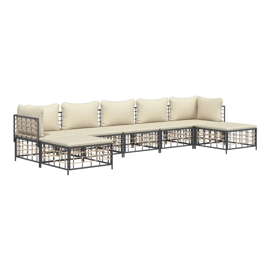 Profitez d'un moment de café confortable dans votre espace extérieur avec cet ensemble de salon de jardin ! C'est un complément parfait à votre jardin et à votre terrasse, créant une impression durable ! Matériau résistant aux intempéries : le poly rotin est résistant aux intempéries et facile à nettoyer. Il reste beau à l'extérieur pendant une longue période de temps. Il est plus économique que d'autres matériaux, tout en offrant une excellente qualité, une commodité et un aspect esthétique.Cadre robuste et stable : le cadre en acier de l'ensemble de salon assure robustesse et stabilité.Expérience d'assise confortable : le dossier ajoute un confort d'assise supplémentaire pour l'ensemble de salon. De plus, les coussins bien rembourrés offrent un confort pour votre temps d'assise.Conception modulaire : l'ensemble de salon de jardin est flexible et facile à déplacer, vous pouvez donc le combiner avec d'autres segments modulaires de la boutique en ligne pour créer vos propres configurations personnelles de salon de jardin ! Remarque :Pour que vos meubles d'extérieur restent beaux, nous vous recommandons de les protéger avec une housse imperméable.