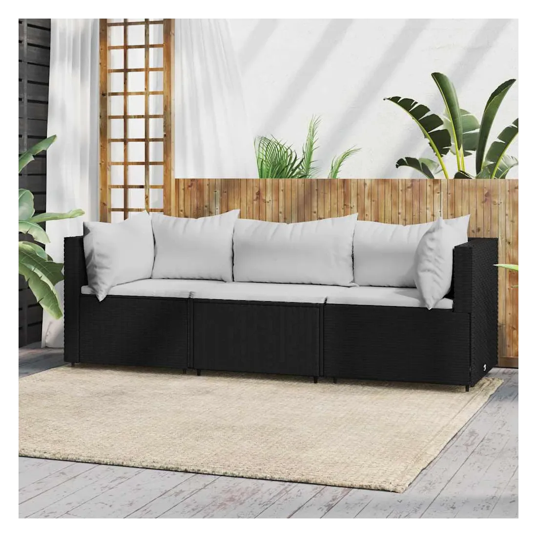 Cet ensemble de salon de jardin tendance, au design élégant et contemporain, est un excellent choix pour manger ou vous détendre dans votre jardin. Matériau résistant aux intempéries : la résine tressée, également connue sous le nom de rotin poly, résiste aux intempéries et est facile à nettoyer. Elle reste belle à l'extérieur pendant une longue période. Elle offre une excellente qualité, commodité et un aspect esthétique.Cadre robuste : les cadres en acier enduit de poudre rendent l'ensemble de salon d'extérieur robuste et stable pour une utilisation quotidienne à l'extérieur.Conception modulaire : l'ensemble de salon de jardin est flexible et facile à déplacer, vous pouvez donc le combiner avec d'autres segments modulaires dans la boutique en ligne pour créer vos propres configurations d'ensemble de salon de jardin !Expérience d'assise confortable : le dossier ajoute un confort d'assise supplémentaire au canapé de jardin. De plus, les coussins bien rembourrés offrent du confort pendant votre temps d'assise. Bon à savoir :Pour faciliter au maximum le montage, chaque produit est livré avec des instructions. Remarque :Le produit est conçu pour une utilisation à l'extérieur uniquement. Ne le rangez pas à l'intérieur.Pour que vos meubles d'extérieur restent beaux, nous vous recommandons de les protéger avec une housse imperméable.
