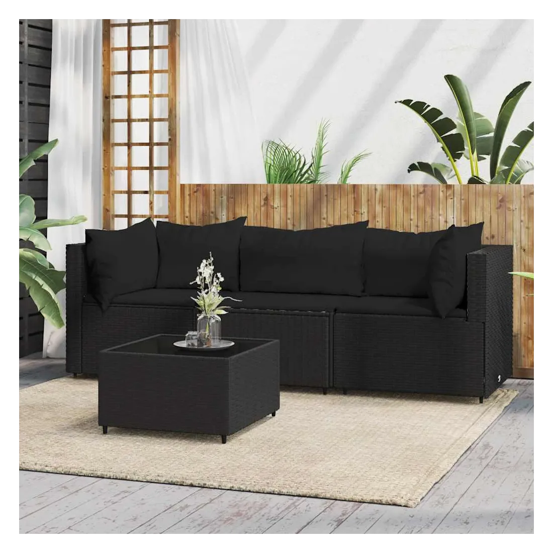 Cet ensemble de salon de jardin tendance, au design élégant et contemporain, est un excellent choix pour manger ou vous détendre dans votre jardin. Matériau résistant aux intempéries : la résine tressée, également connue sous le nom de rotin poly, résiste aux intempéries et est facile à nettoyer. Elle reste belle à l'extérieur pendant une longue période. Elle offre une excellente qualité, commodité et un aspect esthétique.Cadre robuste : les cadres en acier enduit de poudre rendent l'ensemble de salon d'extérieur robuste et stable pour une utilisation quotidienne à l'extérieur.Dessus de table pratique : le dessus lisse de la table de jardin est en verre trempé, facile à nettoyer avec un chiffon humide. De plus, le dessus robuste est parfait pour placer des repas, des boissons et d'autres objets décoratifs.Conception modulaire : l'ensemble de salon de jardin est flexible et facile à déplacer, vous pouvez donc le combiner avec d'autres segments modulaires dans la boutique en ligne pour créer vos propres configurations d'ensemble de salon de jardin !Expérience d'assise confortable : le dossier ajoute un confort d'assise supplémentaire au canapé de jardin. De plus, les coussins bien rembourrés offrent du confort pendant votre temps d'assise. Bon à savoir :Pour faciliter au maximum le montage, chaque produit est livré avec des instructions. Remarque :Le produit est conçu pour une utilisation à l'extérieur uniquement. Ne le rangez pas à l'intérieur.Pour que vos meubles d'extérieur restent beaux, nous vous recommandons de les protéger avec une housse imperméable.
