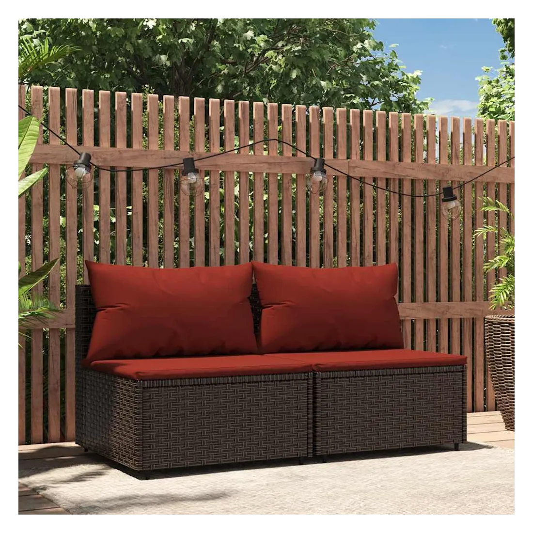 Ces canapés centraux de jardin tendances, au design élégant et contemporain, sont parfaits pour manger ou vous détendre dans votre jardin. Matériau résistant aux intempéries : la résine tressée, également connue sous le nom de rotin poly, résiste aux intempéries et est facile à nettoyer. Elle reste belle à l'extérieur pendant une longue période. Elle offre une excellente qualité, commodité et un aspect esthétique.Cadre robuste : le cadre en acier enduit de poudre rend le canapé robuste et stable pour une utilisation quotidienne à l'extérieur.Design modulaire : le canapé d'extérieur est flexible et facile à déplacer, vous pouvez donc le combiner avec d'autres segments modulaires de la boutique en ligne pour créer vos propres configurations de salon de jardin !Expérience d'assise confortable : le dossier ajoute un confort d'assise supplémentaire au canapé de jardin. De plus, les coussins bien rembourrés offrent du confort pendant votre temps d'assise. Bon à savoir :Pour faciliter au maximum le montage, chaque produit est livré avec des instructions. Remarque :Le produit est conçu pour une utilisation à l'extérieur uniquement. Ne le rangez pas à l'intérieur.Pour que vos meubles d'extérieur restent beaux, nous vous recommandons de les protéger avec une housse imperméable.