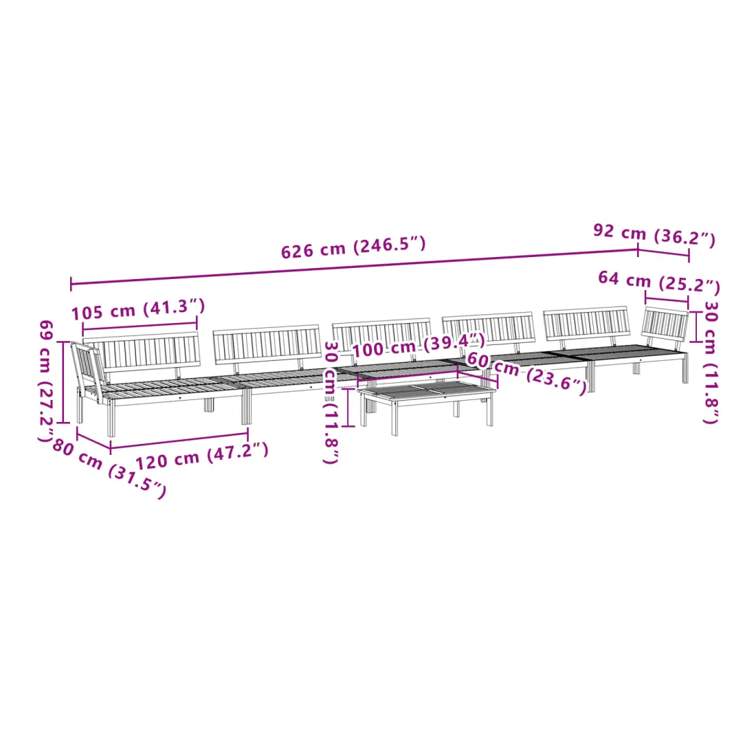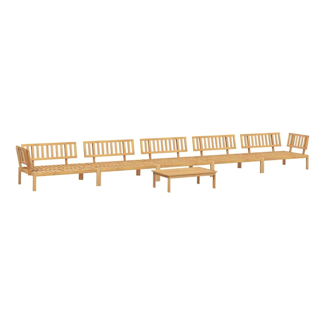 Cet ensemble de canapés palette en bois comprend 1 table et 5 canapés. C'est un excellent choix pour une utilisation relaxante en extérieur. Matériau durable : le bois d'acacia massif est un matériau naturel magnifique. Le bois d'acacia est un bois dur tropical, qui est dense, robuste et durable. Sa finition à l'huile permet à cet ensemble de meubles d'être utilisée à l'extérieur.Expérience d'assise confortable : le dossier ajoute un confort d'assise supplémentaire au canapé d'extérieur. Design modulaire : le canapé sectionnel est flexible et facile à déplacer. Vous pouvez le combiner avec d'autres segments modulaires disponibles dans le menu déroulant pour créer vos propres configurations de salon de jardin ! Bon à savoir :Pour que vos meubles d'extérieur restent beaux, nous vous recommandons de les protéger avec une housse imperméable.Le coussin n'est pas inclus avec ce canapé palette. Nous offrons un coussin de palette standard de 120x80 cm. Vous pouvez consulter notre boutique pour trouver un coussin assorti.