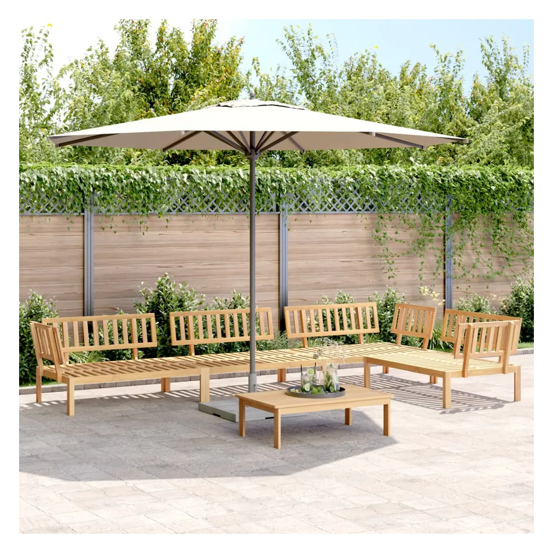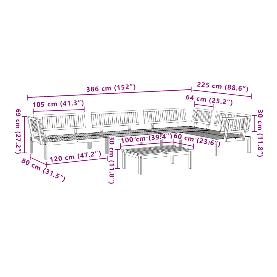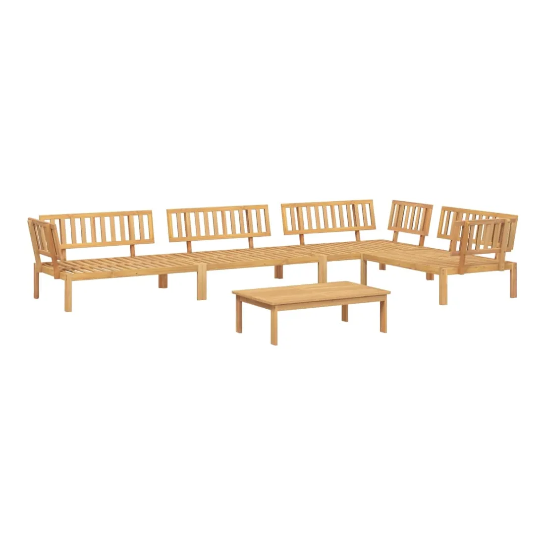 Cet ensemble de canapés palette en bois comprend 1 table et 4 canapés. C'est un excellent choix pour une utilisation relaxante en extérieur. Matériau durable : le bois d'acacia massif est un matériau naturel magnifique. Le bois d'acacia est un bois dur tropical, qui est dense, robuste et durable. Sa finition à l'huile permet à cet ensemble de meubles d'être utilisée à l'extérieur.Expérience d'assise confortable : le dossier ajoute un confort d'assise supplémentaire au canapé d'extérieur. Design modulaire : le canapé sectionnel est flexible et facile à déplacer. Vous pouvez le combiner avec d'autres segments modulaires disponibles dans le menu déroulant pour créer vos propres configurations de salon de jardin ! Bon à savoir :Pour que vos meubles d'extérieur restent beaux, nous vous recommandons de les protéger avec une housse imperméable.Le coussin n'est pas inclus avec ce canapé palette. Nous offrons un coussin de palette standard de 120x80 cm. Vous pouvez consulter notre boutique pour trouver un coussin assorti.