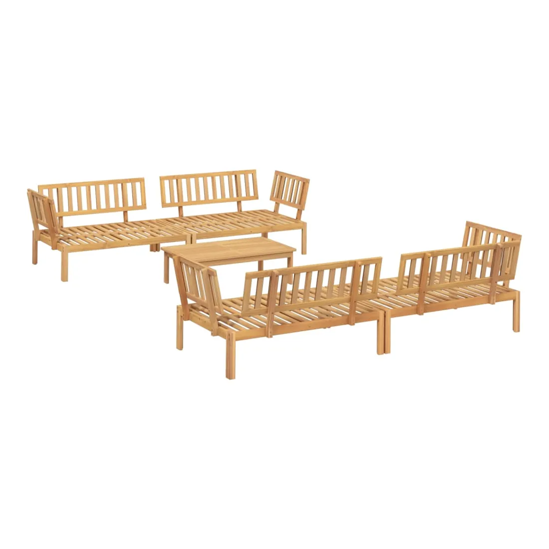 Cet ensemble de canapés palette en bois comprend 1 table et 4 canapés. C'est un excellent choix pour une utilisation relaxante en extérieur. Matériau durable : le bois d'acacia massif est un matériau naturel magnifique. Le bois d'acacia est un bois dur tropical, qui est dense, robuste et durable. Sa finition à l'huile permet à cet ensemble de meubles d'être utilisée à l'extérieur.Expérience d'assise confortable : le dossier ajoute un confort d'assise supplémentaire au canapé d'extérieur. Design modulaire : le canapé sectionnel est flexible et facile à déplacer. Vous pouvez le combiner avec d'autres segments modulaires disponibles dans le menu déroulant pour créer vos propres configurations de salon de jardin ! Bon à savoir :Pour que vos meubles d'extérieur restent beaux, nous vous recommandons de les protéger avec une housse imperméable.Le coussin n'est pas inclus avec ce canapé palette. Nous offrons un coussin de palette standard de 120x80 cm. Vous pouvez consulter notre boutique pour trouver un coussin assorti.