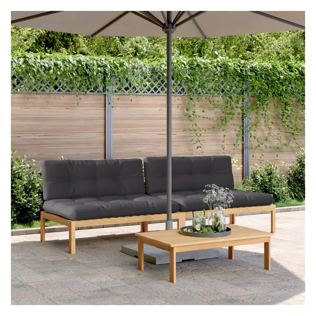 Canapés centraux palette de jardin 2pcs et coussins bois acacia