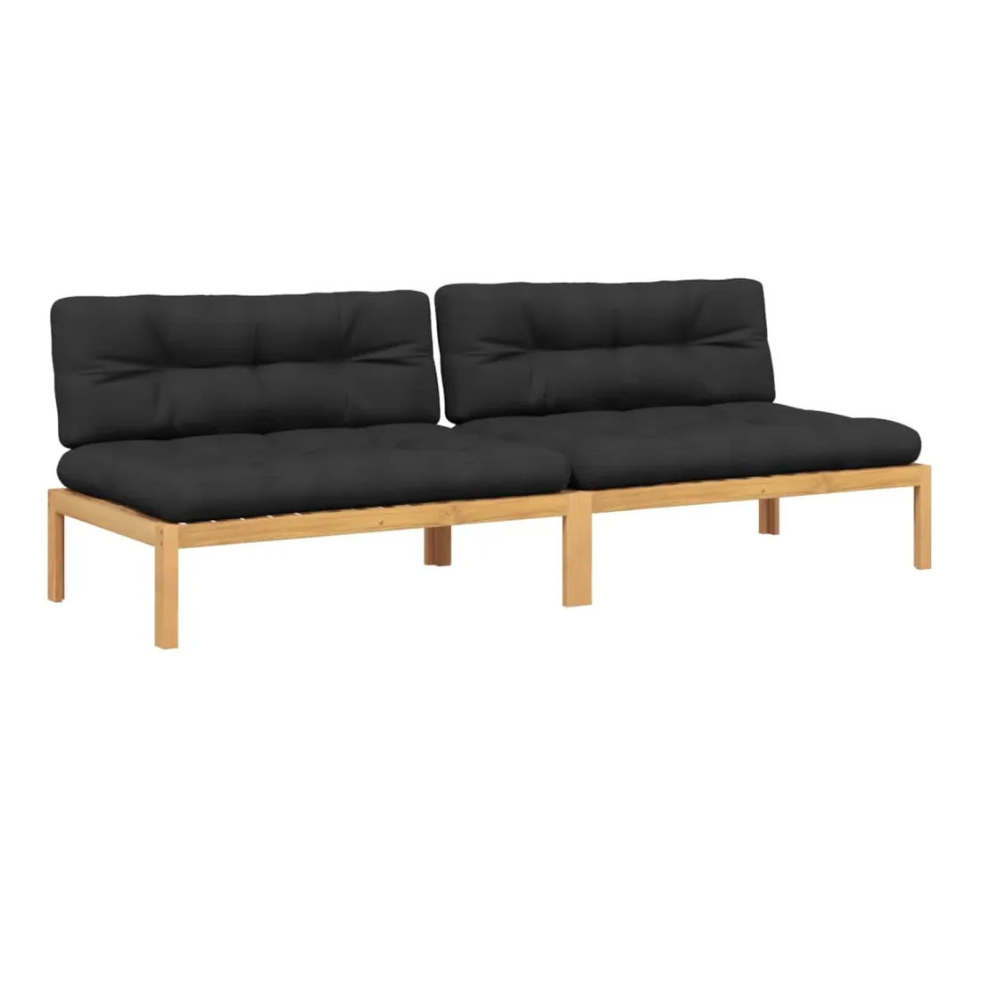 Canapés centraux palette de jardin 2pcs et coussins bois acacia