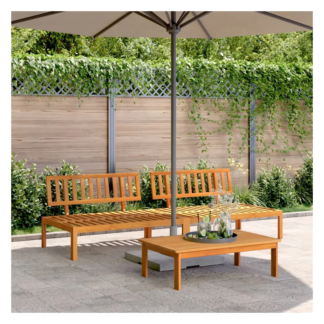 Savourez un café ou discutez avec votre famille et vos amis dans le jardin, l'arrière-cour ou sur le balcon avec ces canapés centraux en palette de jardin ! Matériau durable : le bois d'acacia massif est un matériau naturel magnifique. Le bois d'acacia un bois dur tropical, qui est dense, robuste et durable.Bonne ventilation et prévention de l'accumulation d'eau : la conception à lattes favorise une circulation optimale de l'air et empêche efficacement l'accumulation d'eau, assurant ainsi une assise sèche et confortable.Expérience d'assise confortable : le dossier ajoute un confort d'assise supplémentaire au canapé d'extérieur.Conception modulaire : cet ensemble de meubles d'extérieur a une conception modulaire, ce qui le rend complètement flexible et facile à déplacer, afin que vous puissiez créer un agencement de meubles d'extérieur personnalisé. Bon à savoir :Pour que vos meubles d'extérieur restent beaux, nous vous recommandons de les protéger avec une housse imperméable.Le coussin n'est pas inclus avec ce canapé palette. Nous offrons un coussin de palette standard de 120x80 cm. Vous pouvez consulter notre boutique pour trouver un coussin assorti.