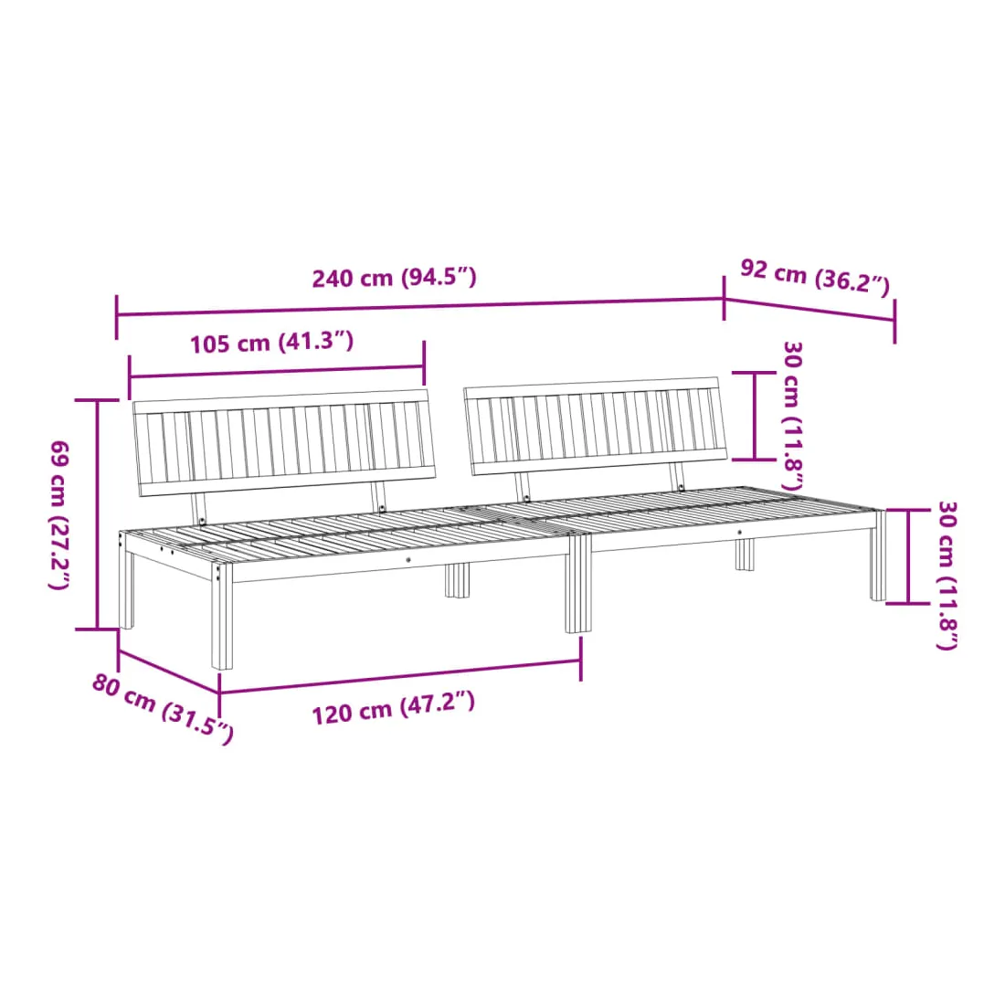 - Dimensions du siège : 120 x 80 cm (l x P)