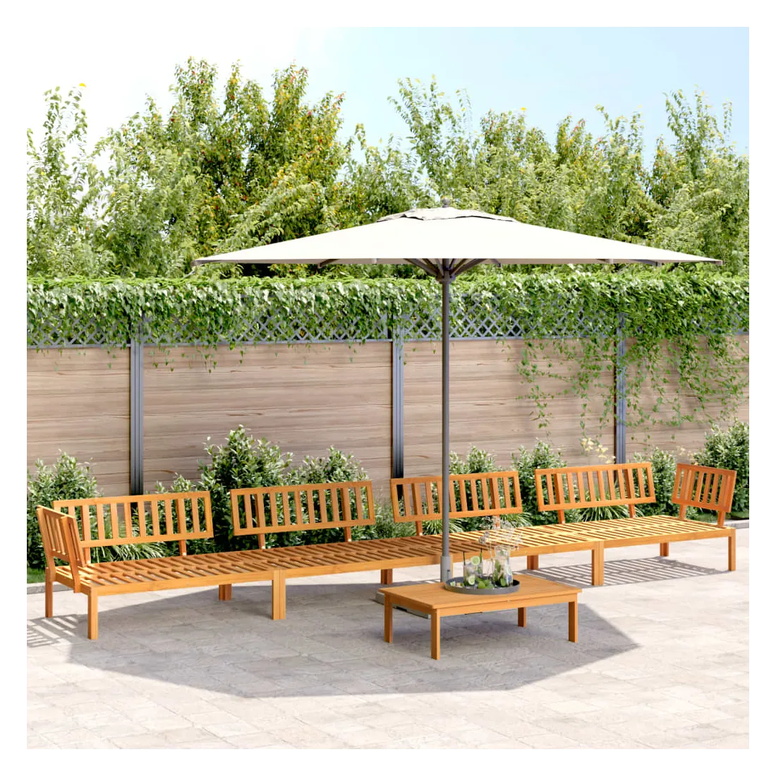 Cet ensemble de canapés en palettes en bois au design à lattes sera un excellent ajout à votre jardin, patio ou terrasse pour profiter d’un moment agréable en famille ou entre amis. Matériau durable : le bois d'acacia massif est un matériau naturel magnifique. Le bois d'acacia un bois dur tropical, qui est dense, robuste et durable.Dessus stable et facile à nettoyer : cette table de jardin a un dessus en bois d'acacia robuste, durable et facile à nettoyer avec un chiffon humide.Bonne ventilation et prévention de l'accumulation d'eau : la conception à lattes favorise une circulation optimale de l'air et empêche efficacement l'accumulation d'eau, assurant ainsi une assise sèche et confortable.Conception modulaire : cet ensemble de meubles d'extérieur a une conception modulaire, ce qui le rend complètement flexible et facile à déplacer, afin que vous puissiez créer un agencement de meubles d'extérieur personnalisé. Bon à savoir :Pour que vos meubles d'extérieur restent beaux, nous vous recommandons de les protéger avec une housse imperméable.Le coussin n'est pas inclus avec ce canapé palette. Nous offrons un coussin de palette standard de 120x80 cm. Vous pouvez consulter notre boutique pour trouver un coussin assorti.