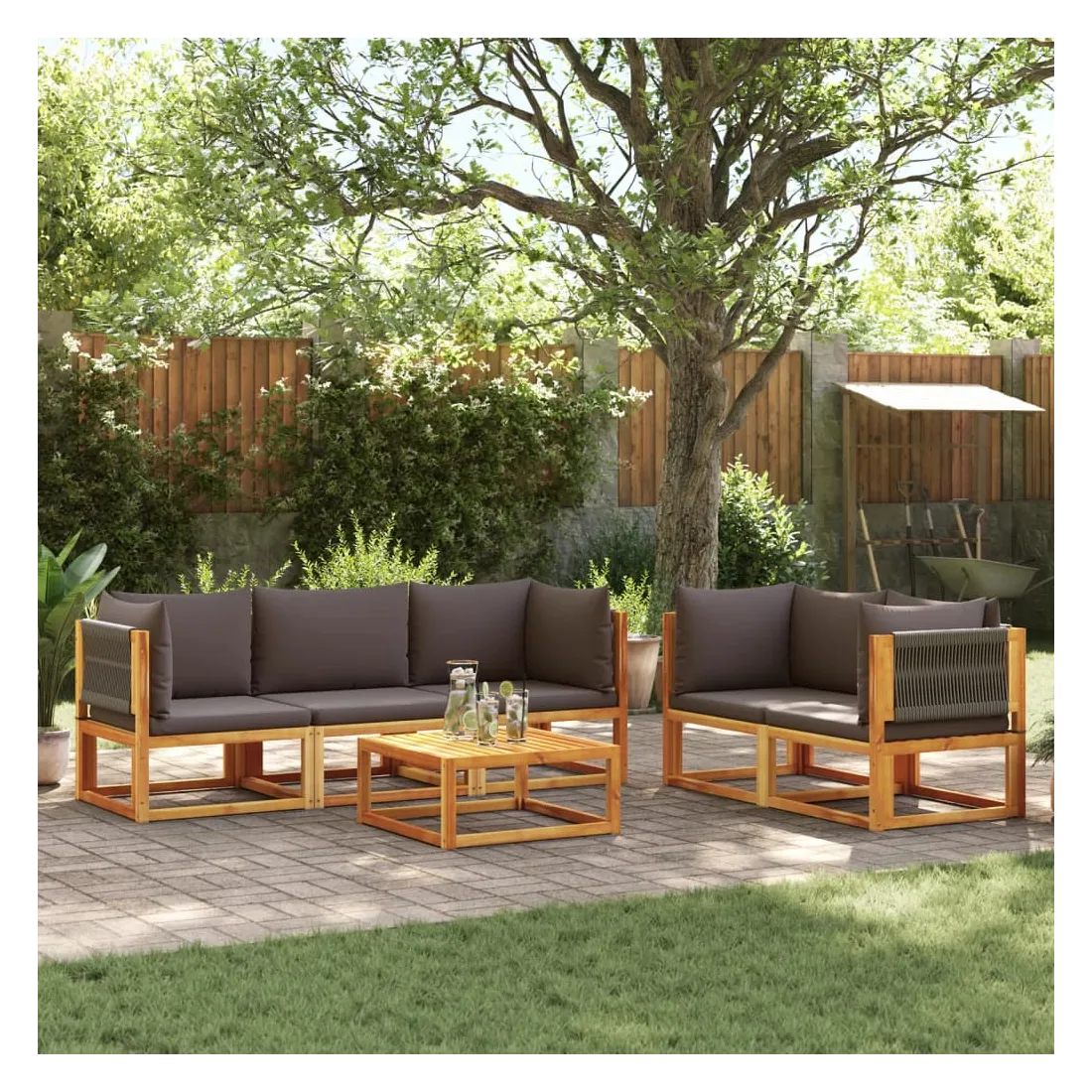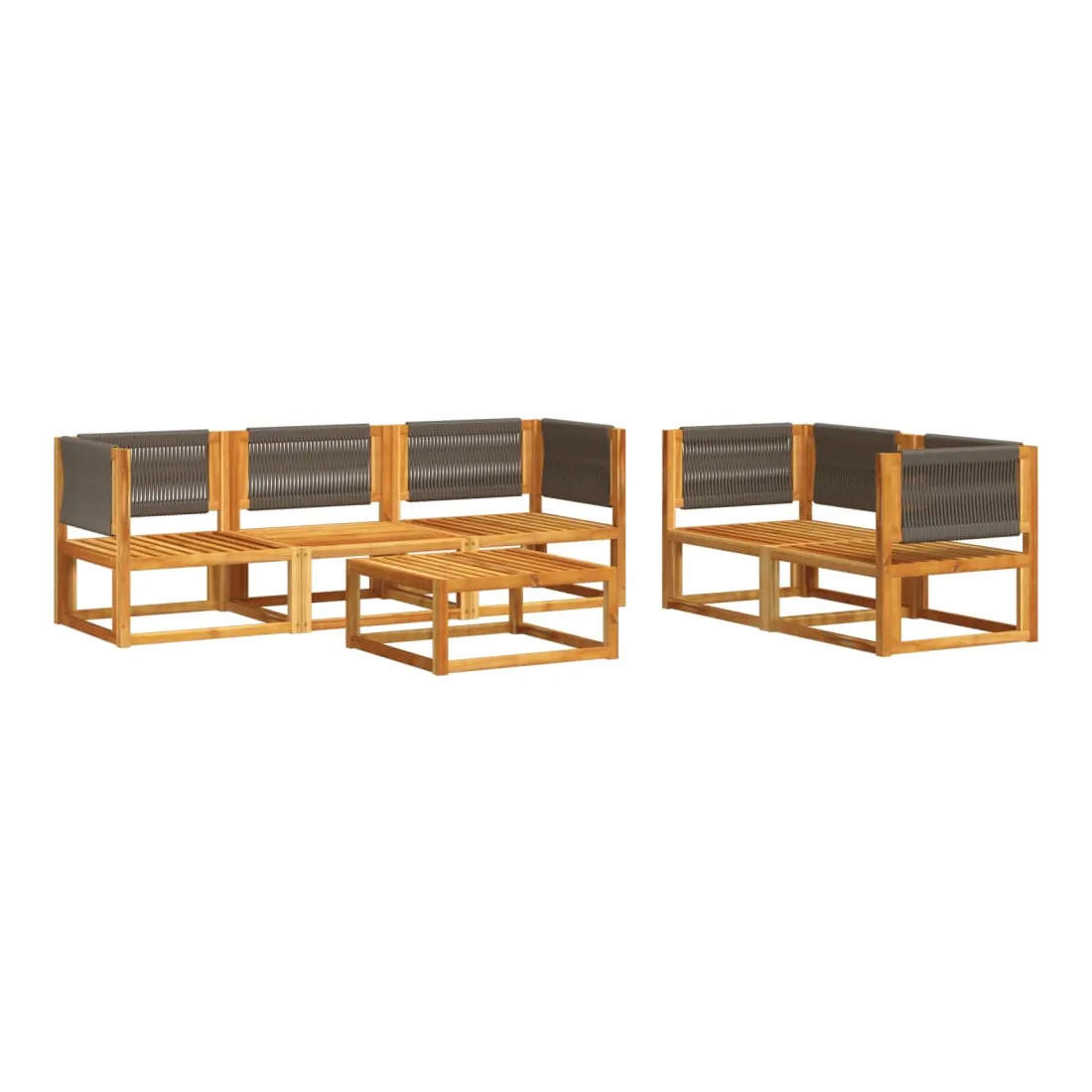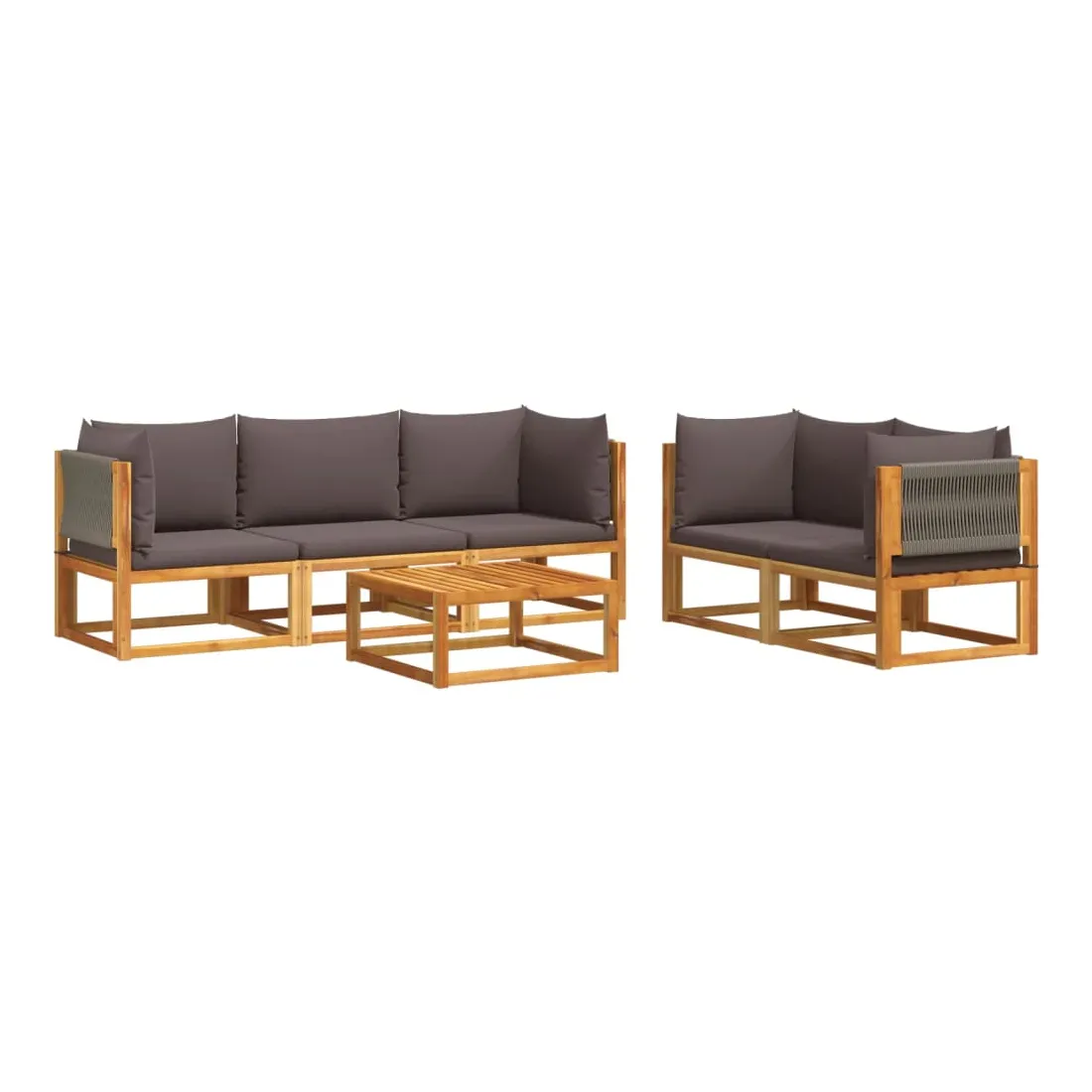 Ensemble de canapés de jardin 6 pièces avec coussins en bois d'acacia et corde