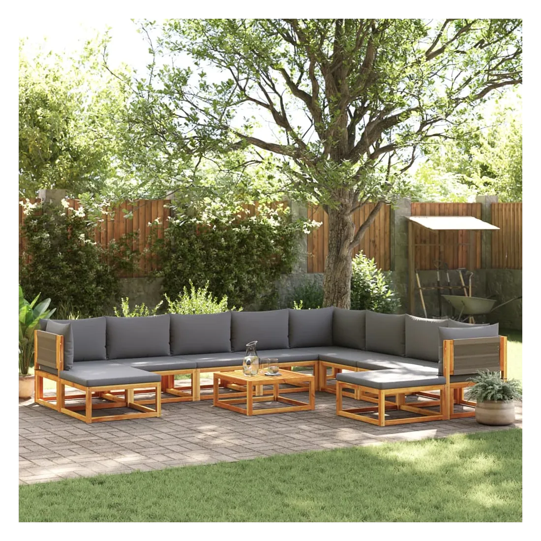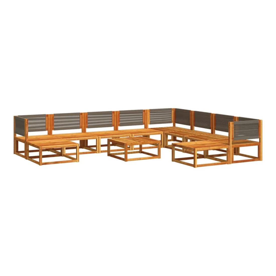 Ensemble de canapés de jardin 11 pièces avec coussins en bois d'acacia et corde