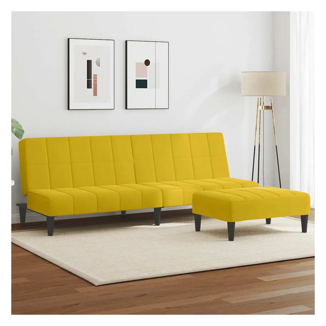 Ce canapé-lit avec repose-pied est une solution parfaite pour accueillir des invités pour la nuit tout en offrant un espace confortable pour s'asseoir pendant la journée. Fonction 2 en 1 : ce canapé-lit se transforme rapidement et facilement d'un canapé en un lit et à nouveau en canapé. Vous pouvez pousser les deux dossiers séparés partiellement ou complètement vers le bas pour créer un endroit idéal pour une sieste ou un lit double.Expérience d’assise confortable : ce canapé-lit est recouvert d’un velours doux et confortable. Le tissu en velours présente une surface douce et lisse qui offre une sensation agréable contre la peau, vous apportant chaleur et confort ultime.Cadre robuste et stable : le cadre en bois du canapé-lit assure robustesse et stabilité.Polyvalence : ce lit d'appoint avec repose-pied est idéal pour divers espaces comme les salons, les cinémas maison, les sous-sols, les petites pièces, les dortoirs, les appartements, les studios et les bureaux. Il offre une expérience de divertissement familial heureuse et améliore également la décoration de votre chambre.