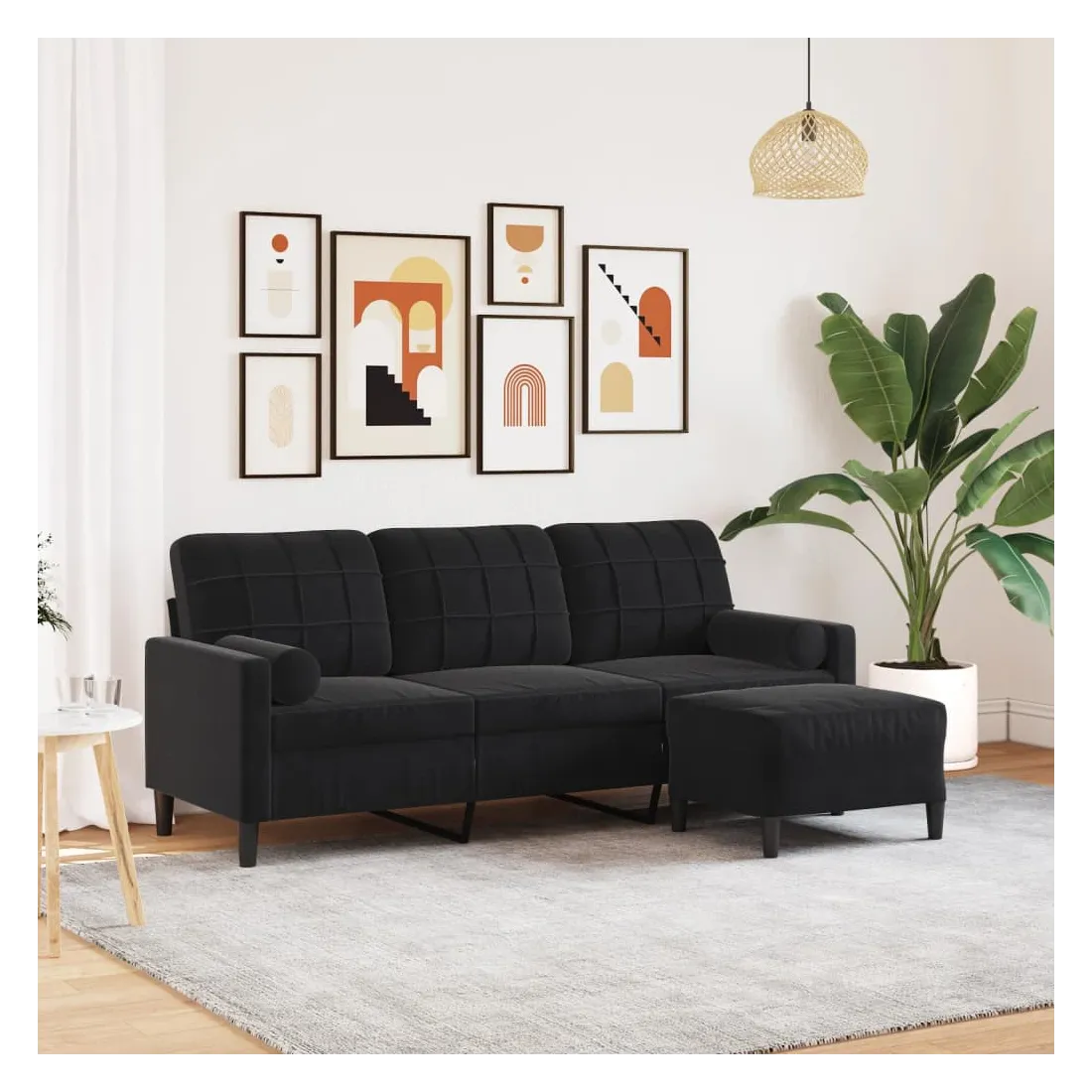 Ce canapé à 3 places est un excellent endroit pour discuter, lire, regarder la télévision ou simplement vous détendre. Il est destiné à être un point central dans votre maison. Matériau doux et confortable : le tissu en velours présente une surface douce et lisse qui offre une sensation agréable contre la peau, vous apportant chaleur et confort ultime.Cadre robuste et stable : le cadre en métal du canapé de salon assure robustesse et stabilité.Expérience d'assise confortable : le canapé est très confortable avec les sièges, les accoudoirs et les oreillers de dossier bien rembourrés.Pouf polyvalent : le tabouret est polyvalent, servant de repose-pieds confortable lorsque vous vous allongez sur le canapé ou de siège supplémentaire dans votre jardin. De plus, le design simple et la taille compacte le rendent idéal pour presque tous vos espaces de vie.Design accrocheur : doté d'un design simple mais moderne, ce canapé est destiné à attirer l'attention dans votre chambre.