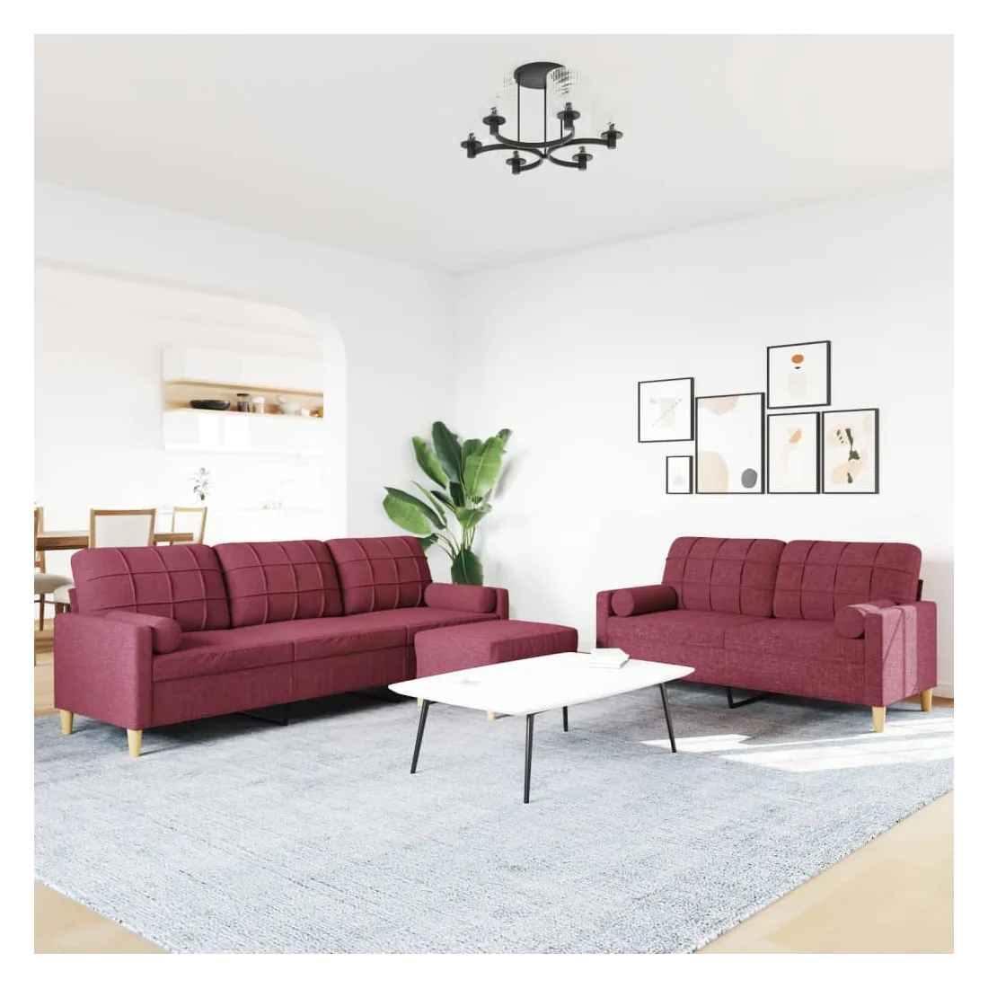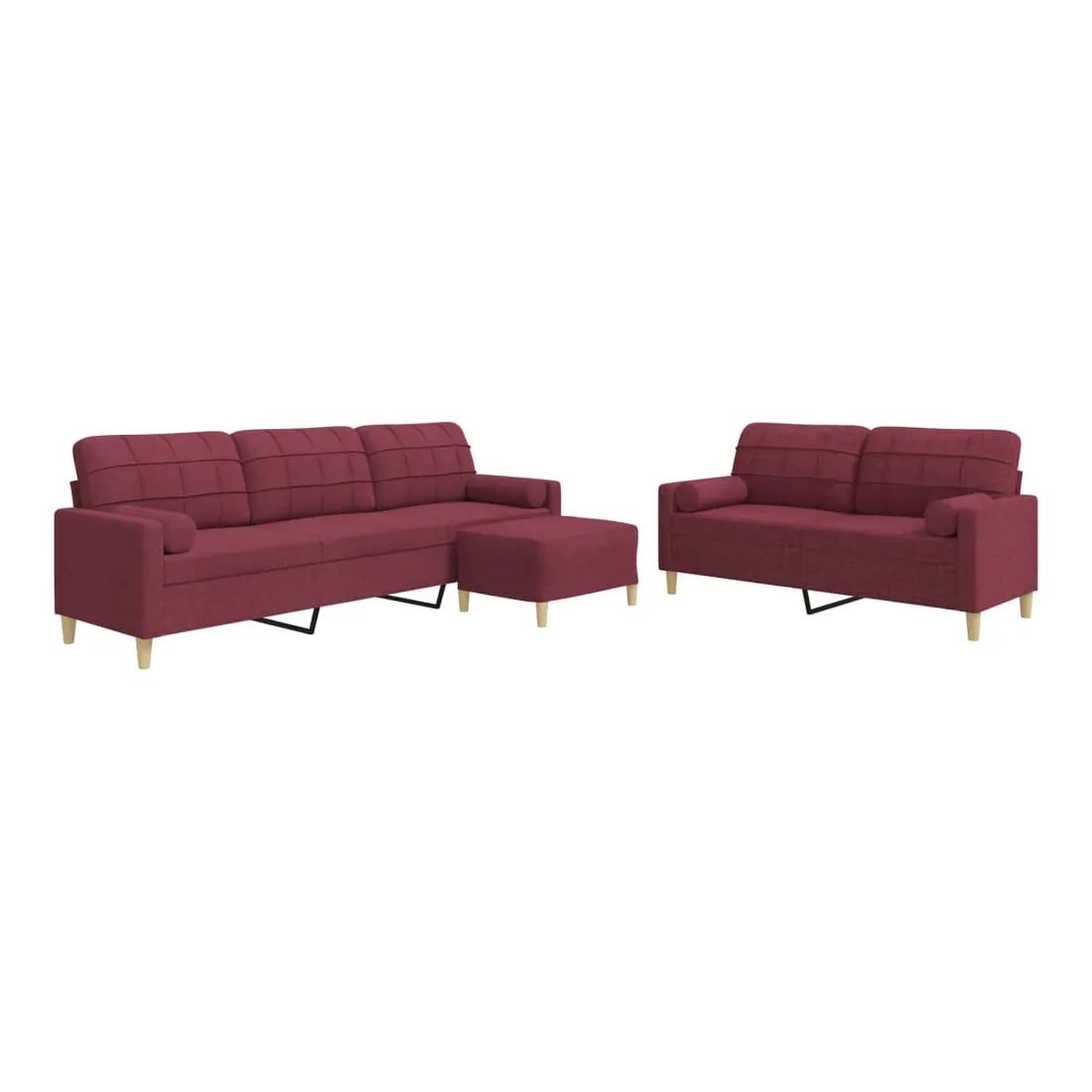 Cet ensemble de canapés est un excellent endroit pour discuter, lire, regarder la télévision ou simplement vous détendre. Il est destiné à être un point central de votre maison. Matériau doux et durable : le tissu en polyester offre une combinaison de douceur, de respirabilité et de durabilité, vous garantissant un confort et une convivialité ultimes. Cadre robuste et stable : le cadre en métal du canapé en tissu assure robustesse et stabilité. Expérience d'assise confortable : le canapé est très confortable avec les sièges, les accoudoirs et les oreillers de dossier bien rembourrés. Oreillers cylindriques pratiques : ces oreillers cylindriques non seulement embellissent votre décor, mais ils peuvent également apporter un confort supplémentaire lorsque vous êtes assis ou allongé. Pouf polyvalent : ce repose-pied convient pour reposer vos pieds lorsque vous êtes allongé dans un canapé, ou pour vous offrir un siège supplémentaire dans votre pièce. De plus, le design simple et la taille compacte le rendent idéal pour presque tous vos espaces de vie.
