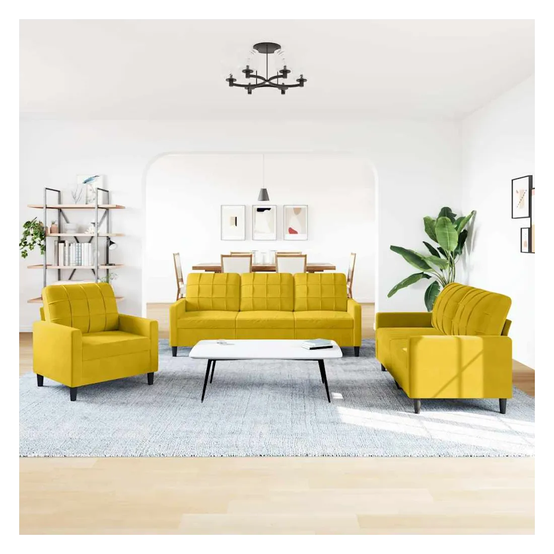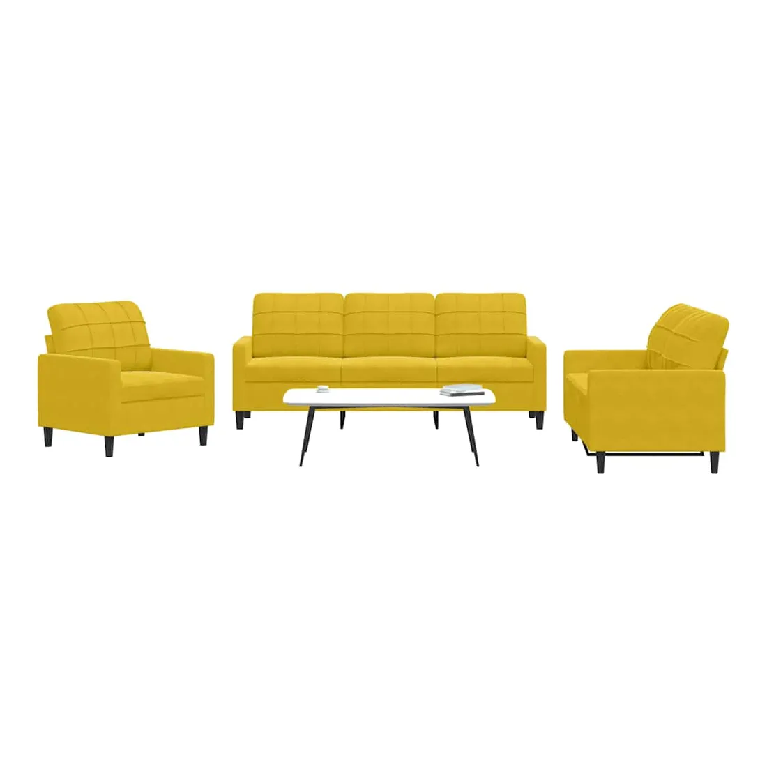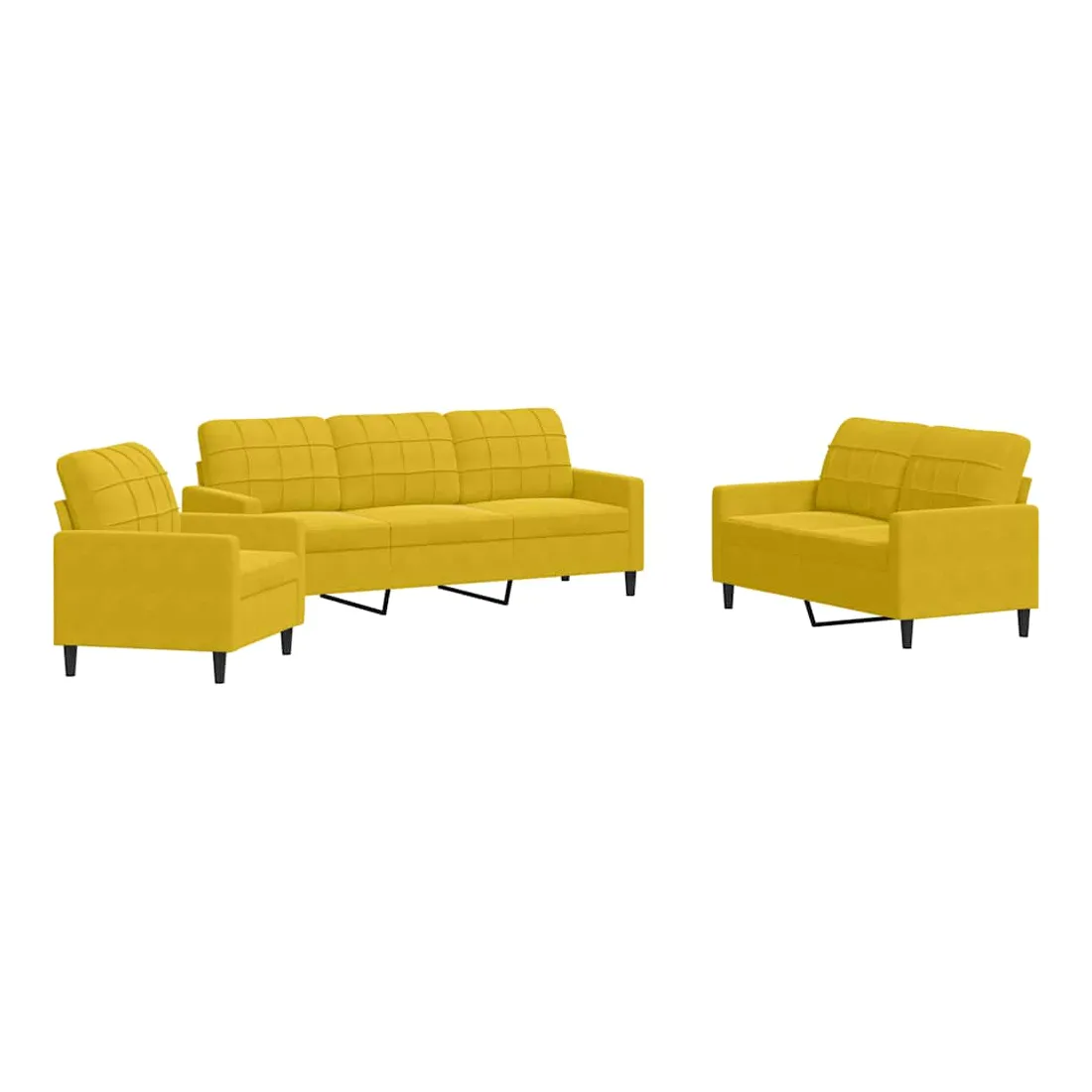 Cet ensemble de canapés est un excellent endroit pour discuter, lire, regarder la télévision ou simplement vous détendre. Il est destiné à être un point central de votre maison. Matériau doux et confortable : le tissu en velours présente une surface douce et lisse qui offre une sensation agréable contre la peau, vous apportant chaleur et confort ultime. Cadre robuste et stable : le cadre en métal du canapé de salon assure robustesse et stabilité. Expérience d'assise confortable : le canapé est très confortable avec les sièges, les accoudoirs et les oreillers de dossier bien rembourrés. Design accrocheur : doté d'un design simple mais moderne, ce canapé est destiné à attirer l'attention dans votre chambre.