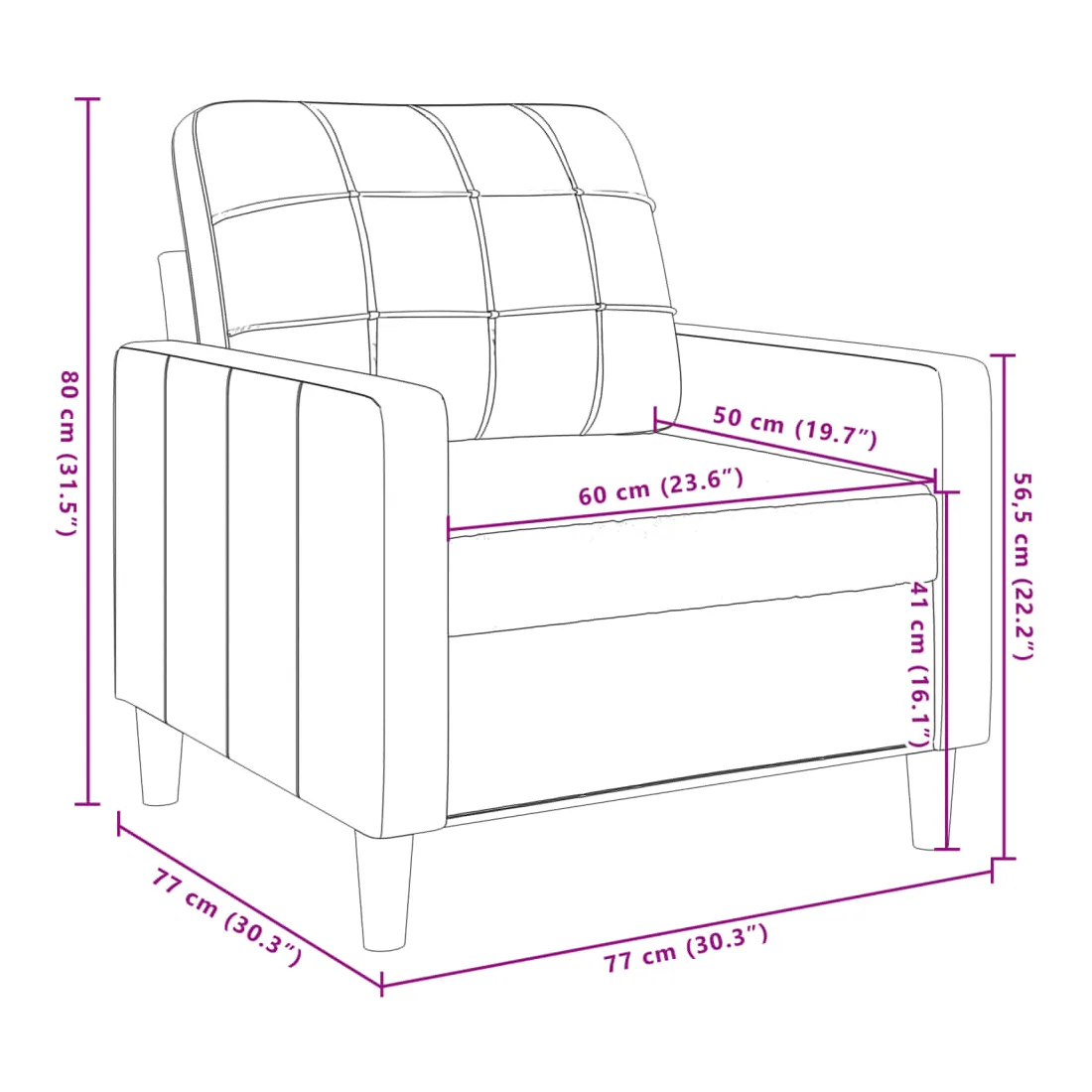 - Profondeur du siège : 50 cm