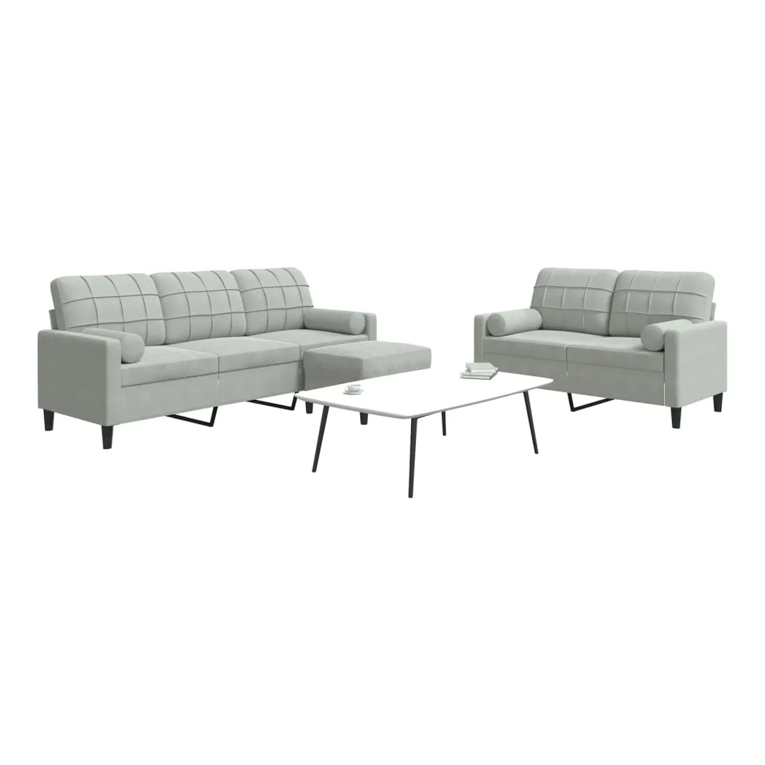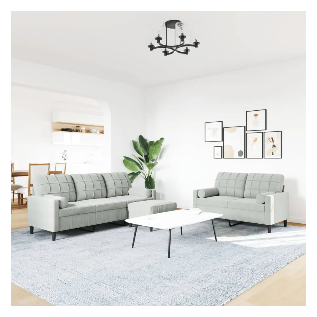 Cet ensemble de canapés est un excellent endroit pour discuter, lire, regarder la télévision ou simplement vous détendre. Il est destiné à être un point central de votre maison. Matériau doux et confortable : le tissu en velours présente une surface douce et lisse qui offre une sensation agréable contre la peau, vous apportant chaleur et confort ultime.Cadre robuste et stable : le cadre en métal du canapé de salon assure robustesse et stabilité.Expérience d'assise confortable : le canapé est très confortable avec les sièges, les accoudoirs et les oreillers de dossier bien rembourrés.Pouf polyvalent : ce repose-pied convient pour reposer vos pieds lorsque vous êtes allongé dans un canapé, ou pour vous offrir un siège supplémentaire dans votre pièce. De plus, le design simple et la taille compacte le rendent idéal pour presque tous vos espaces de vie.Design accrocheur : doté d'un design simple mais moderne, ce canapé est destiné à attirer l'attention dans votre chambre.