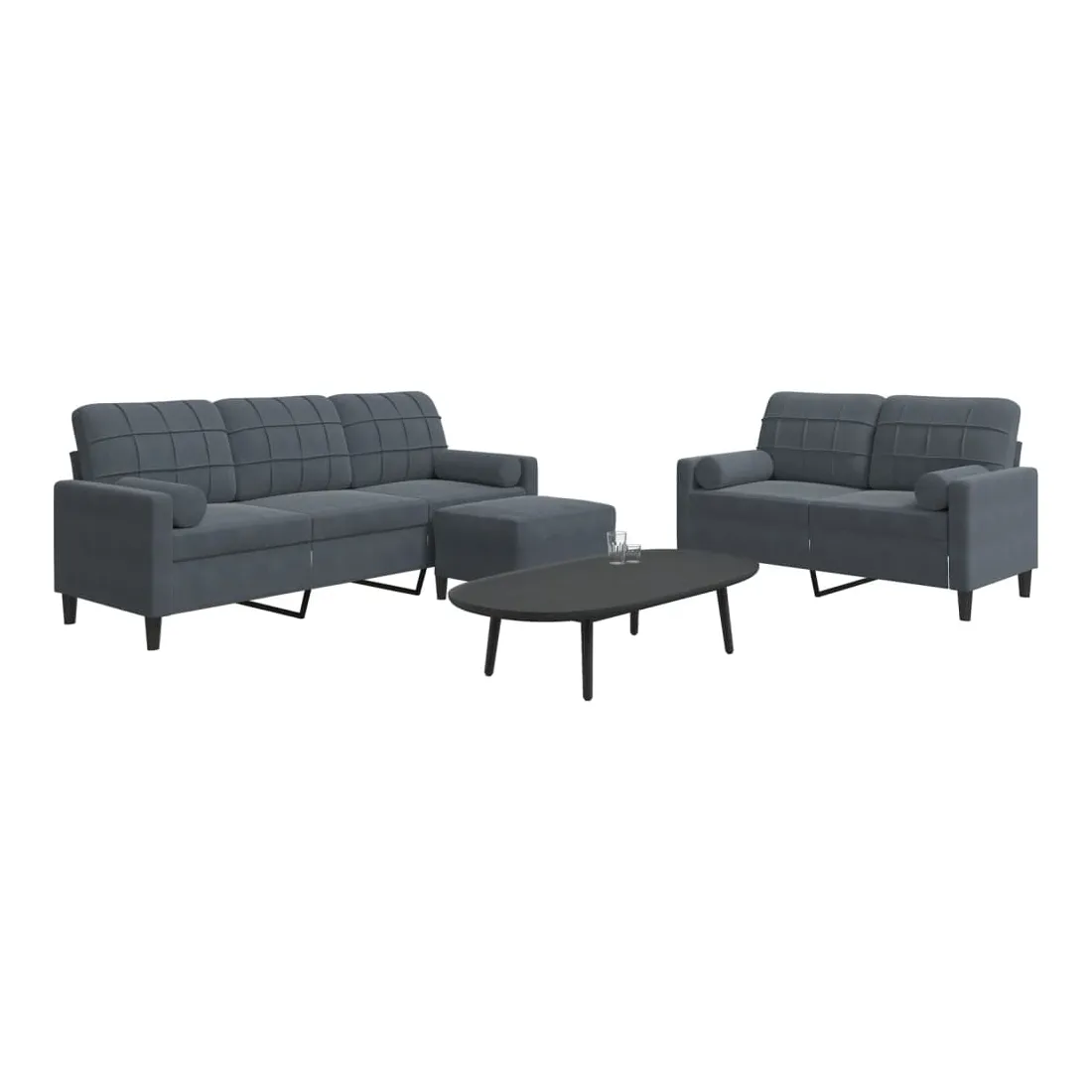 Cet ensemble de canapés est un excellent endroit pour discuter, lire, regarder la télévision ou simplement vous détendre. Il est destiné à être un point central de votre maison. Matériau doux et confortable : le tissu en velours présente une surface douce et lisse qui offre une sensation agréable contre la peau, vous apportant chaleur et confort ultime.Cadre robuste et stable : le cadre en métal du canapé de salon assure robustesse et stabilité.Expérience d'assise confortable : le canapé est très confortable avec les sièges, les accoudoirs et les oreillers de dossier bien rembourrés.Pouf polyvalent : ce repose-pied convient pour reposer vos pieds lorsque vous êtes allongé dans un canapé, ou pour vous offrir un siège supplémentaire dans votre pièce. De plus, le design simple et la taille compacte le rendent idéal pour presque tous vos espaces de vie.Design accrocheur : doté d'un design simple mais moderne, ce canapé est destiné à attirer l'attention dans votre chambre.