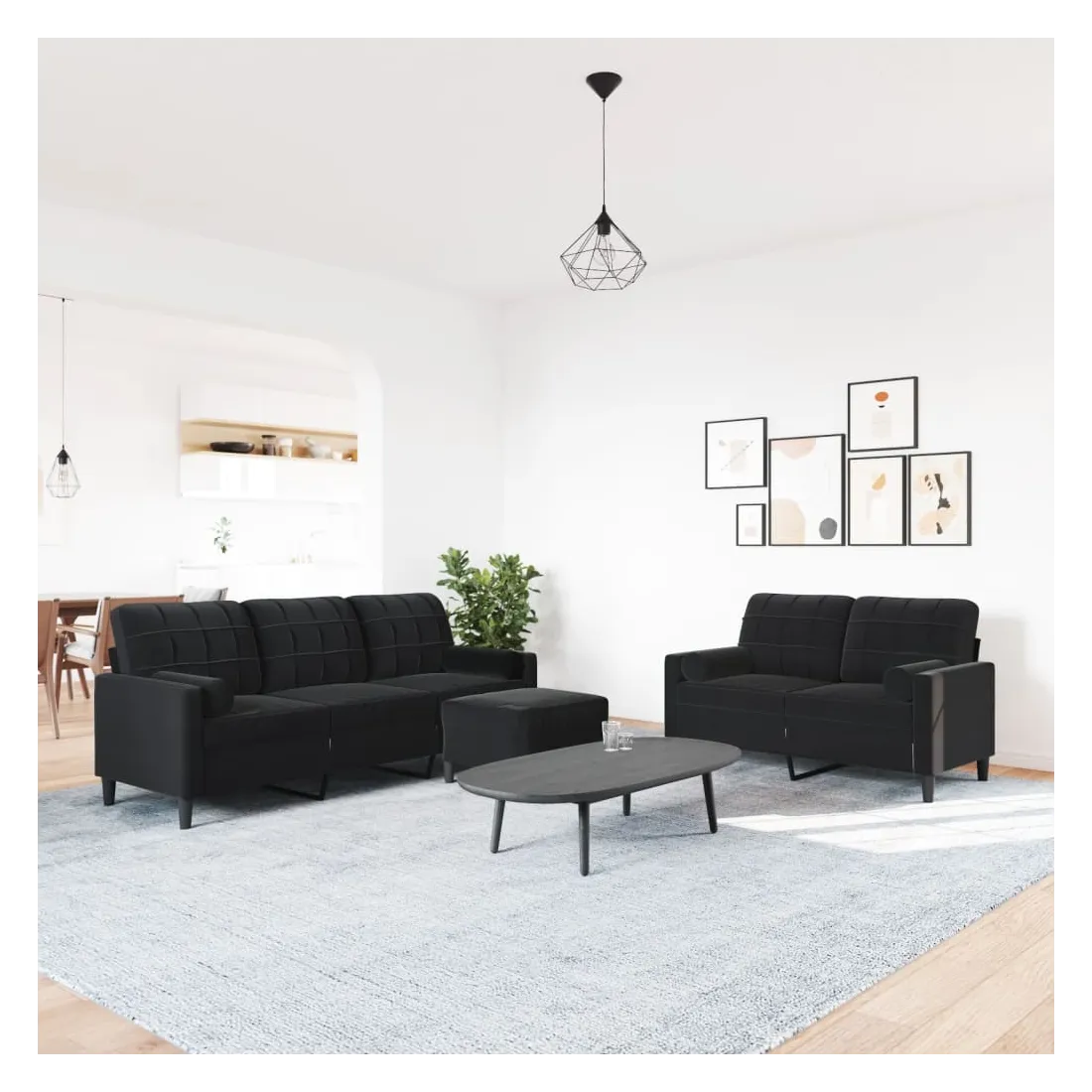 Cet ensemble de canapés est un excellent endroit pour discuter, lire, regarder la télévision ou simplement vous détendre. Il est destiné à être un point central de votre maison. Matériau doux et confortable : le tissu en velours présente une surface douce et lisse qui offre une sensation agréable contre la peau, vous apportant chaleur et confort ultime.Cadre robuste et stable : le cadre en métal du canapé de salon assure robustesse et stabilité.Expérience d'assise confortable : le canapé est très confortable avec les sièges, les accoudoirs et les oreillers de dossier bien rembourrés.Pouf polyvalent : ce repose-pied convient pour reposer vos pieds lorsque vous êtes allongé dans un canapé, ou pour vous offrir un siège supplémentaire dans votre pièce. De plus, le design simple et la taille compacte le rendent idéal pour presque tous vos espaces de vie.Design accrocheur : doté d'un design simple mais moderne, ce canapé est destiné à attirer l'attention dans votre chambre.