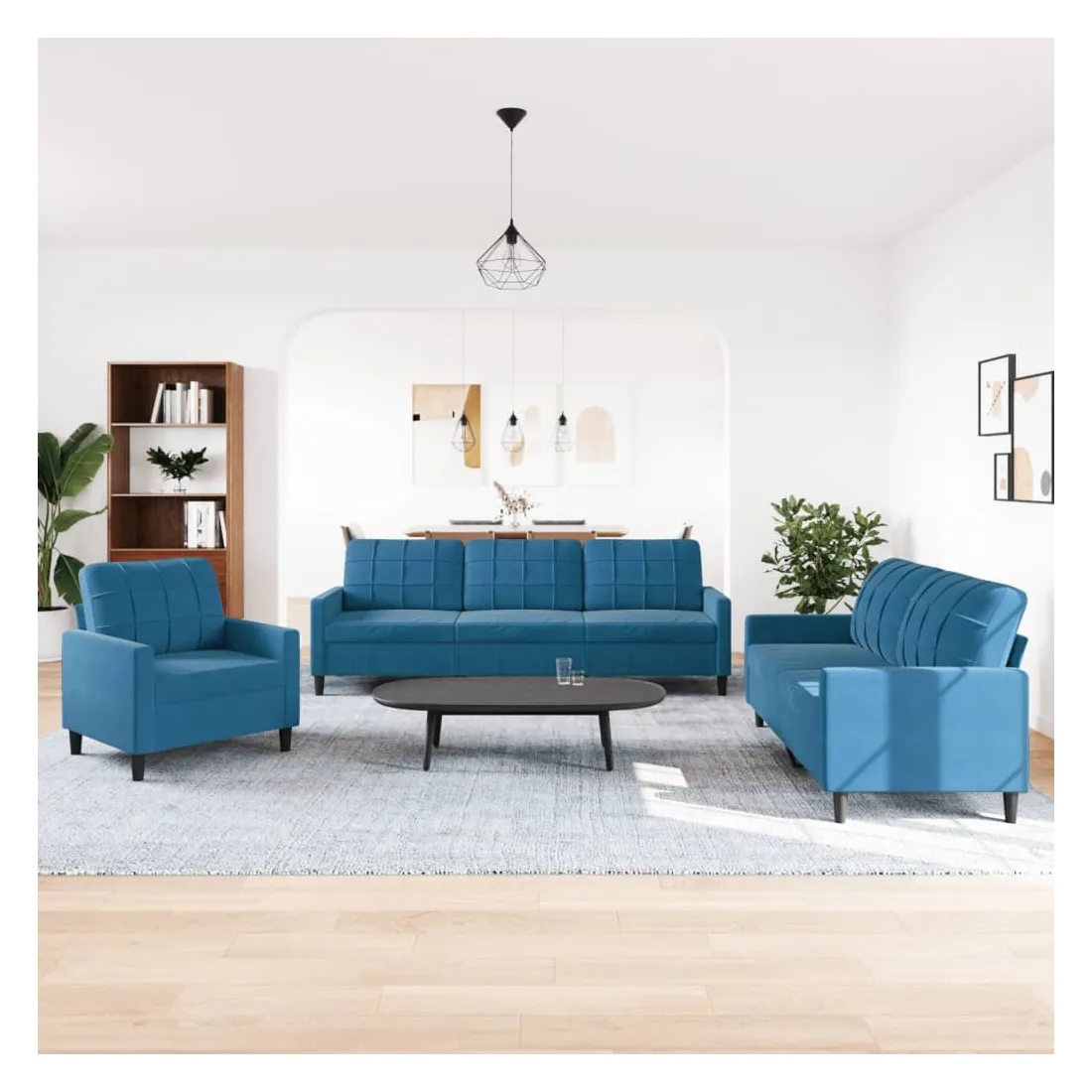 Cet ensemble de canapés est un excellent endroit pour discuter, lire, regarder la télévision ou simplement vous détendre. Il est destiné à être un point central de votre maison. Matériau doux et confortable : le tissu en velours présente une surface douce et lisse qui offre une sensation agréable contre la peau, vous apportant chaleur et confort ultime. Cadre robuste et stable : le cadre en métal du canapé de salon assure robustesse et stabilité. Expérience d'assise confortable : le canapé est très confortable avec les sièges, les accoudoirs et les oreillers de dossier bien rembourrés. Design accrocheur : doté d'un design simple mais moderne, ce canapé est destiné à attirer l'attention dans votre chambre.