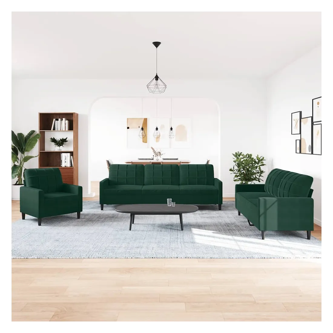 Cet ensemble de canapés est un excellent endroit pour discuter, lire, regarder la télévision ou simplement vous détendre. Il est destiné à être un point central de votre maison. Matériau doux et confortable : le tissu en velours présente une surface douce et lisse qui offre une sensation agréable contre la peau, vous apportant chaleur et confort ultime. Cadre robuste et stable : le cadre en métal du canapé de salon assure robustesse et stabilité. Expérience d'assise confortable : le canapé est très confortable avec les sièges, les accoudoirs et les oreillers de dossier bien rembourrés. Pouf polyvalent : ce repose-pied convient pour reposer vos pieds lorsque vous êtes allongé dans un canapé, ou pour vous offrir un siège supplémentaire dans votre pièce. De plus, le design simple et la taille compacte le rendent idéal pour presque tous vos espaces de vie.Design accrocheur : doté d'un design simple mais moderne, ce canapé est destiné à attirer l'attention dans votre chambre.
