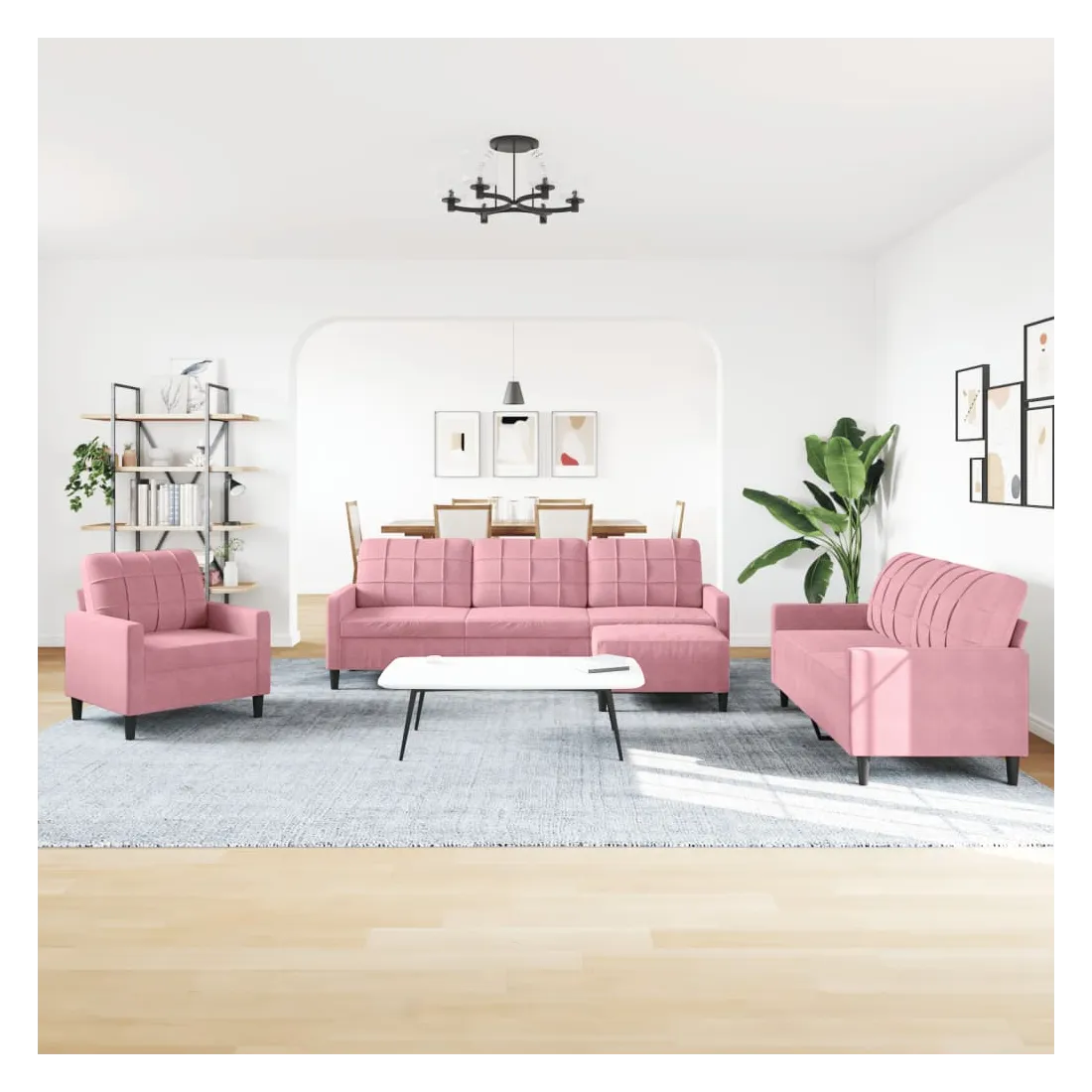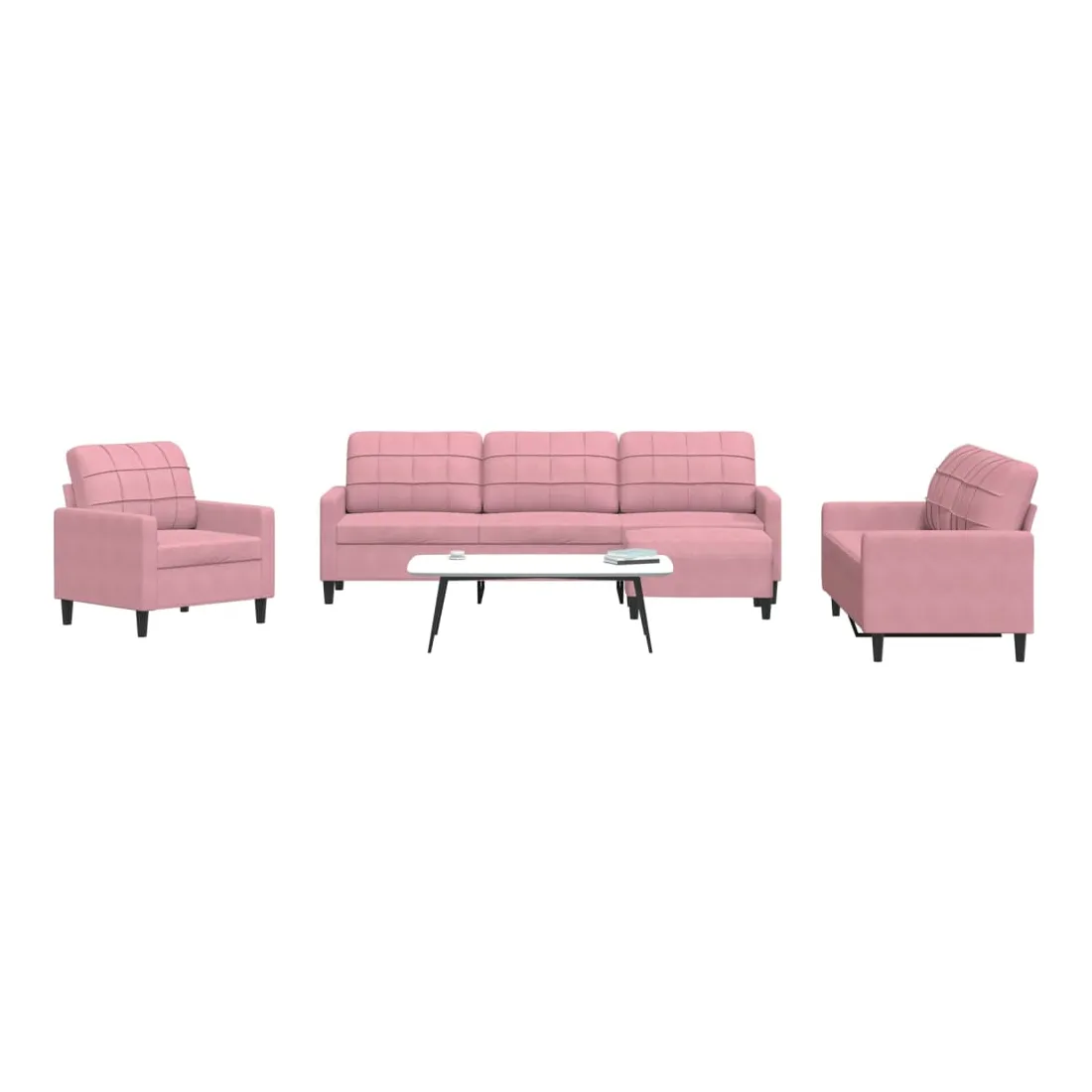 Cet ensemble de canapés est un excellent endroit pour discuter, lire, regarder la télévision ou simplement vous détendre. Il est destiné à être un point central de votre maison. Matériau doux et confortable : le tissu en velours présente une surface douce et lisse qui offre une sensation agréable contre la peau, vous apportant chaleur et confort ultime. Cadre robuste et stable : le cadre en métal du canapé de salon assure robustesse et stabilité. Expérience d'assise confortable : le canapé est très confortable avec les sièges, les accoudoirs et les oreillers de dossier bien rembourrés. Pouf polyvalent : ce repose-pied convient pour reposer vos pieds lorsque vous êtes allongé dans un canapé, ou pour vous offrir un siège supplémentaire dans votre pièce. De plus, le design simple et la taille compacte le rendent idéal pour presque tous vos espaces de vie.Design accrocheur : doté d'un design simple mais moderne, ce canapé est destiné à attirer l'attention dans votre chambre.