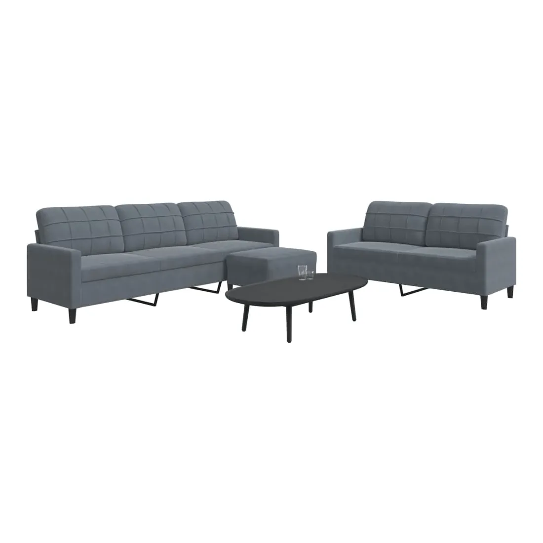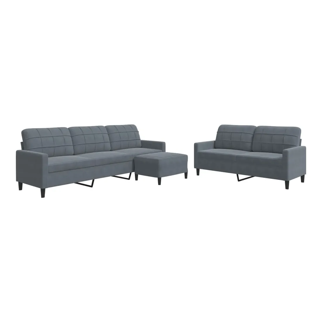 Cet ensemble de canapés est un excellent endroit pour discuter, lire, regarder la télévision ou simplement vous détendre. Il est destiné à être un point central de votre maison. Matériau doux et confortable : le tissu en velours présente une surface douce et lisse qui offre une sensation agréable contre la peau, vous apportant chaleur et confort ultime. Cadre robuste et stable : le cadre en métal du canapé de salon assure robustesse et stabilité. Expérience d'assise confortable : le canapé est très confortable avec les sièges, les accoudoirs et les oreillers de dossier bien rembourrés. Pouf polyvalent : ce repose-pied convient pour reposer vos pieds lorsque vous êtes allongé dans un canapé, ou pour vous offrir un siège supplémentaire dans votre pièce. De plus, le design simple et la taille compacte le rendent idéal pour presque tous vos espaces de vie.Design accrocheur : doté d'un design simple mais moderne, ce canapé est destiné à attirer l'attention dans votre chambre.