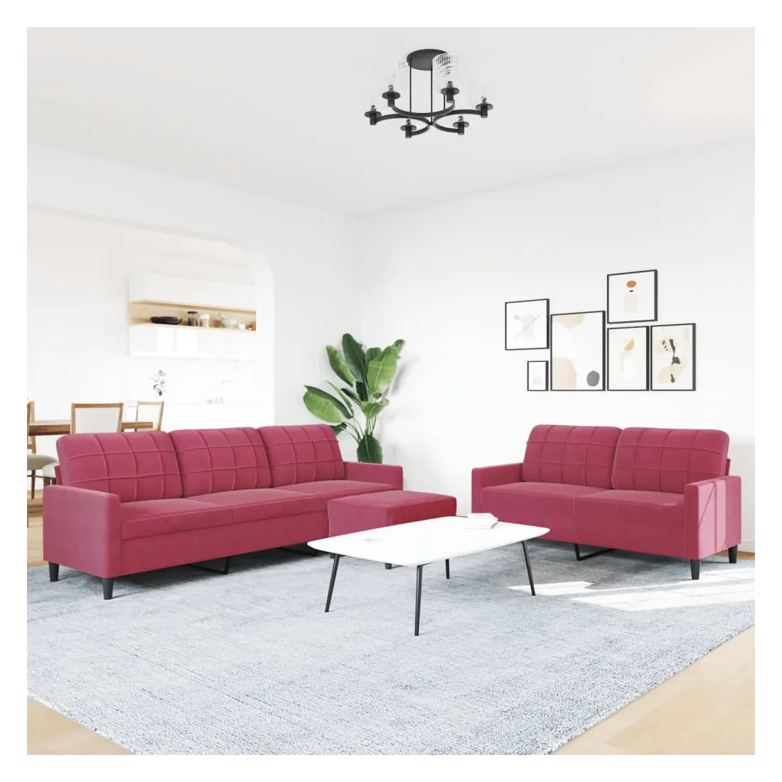 Cet ensemble de canapés est un excellent endroit pour discuter, lire, regarder la télévision ou simplement vous détendre. Il est destiné à être un point central de votre maison. Matériau doux et confortable : le tissu en velours présente une surface douce et lisse qui offre une sensation agréable contre la peau, vous apportant chaleur et confort ultime. Cadre robuste et stable : le cadre en métal du canapé de salon assure robustesse et stabilité. Expérience d'assise confortable : le canapé est très confortable avec les sièges, les accoudoirs et les oreillers de dossier bien rembourrés. Pouf polyvalent : ce repose-pied convient pour reposer vos pieds lorsque vous êtes allongé dans un canapé, ou pour vous offrir un siège supplémentaire dans votre pièce. De plus, le design simple et la taille compacte le rendent idéal pour presque tous vos espaces de vie.Design accrocheur : doté d'un design simple mais moderne, ce canapé est destiné à attirer l'attention dans votre chambre.