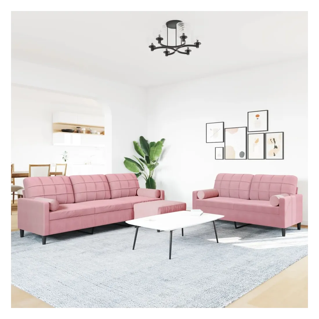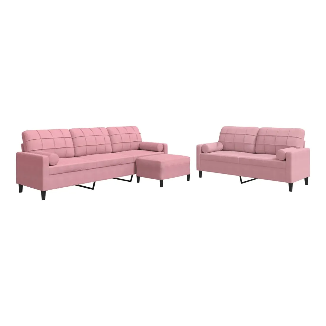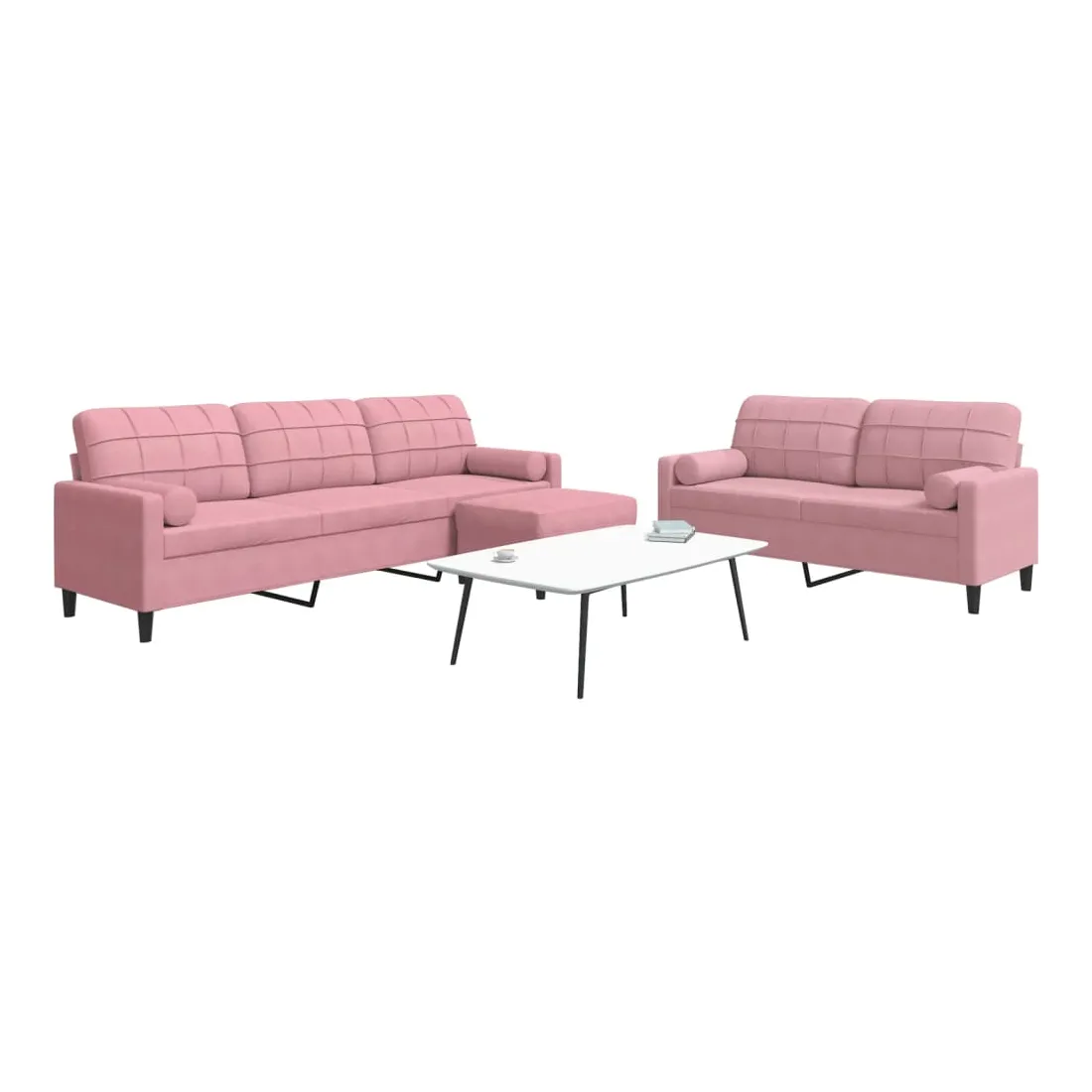 Cet ensemble de canapés est un excellent endroit pour discuter, lire, regarder la télévision ou simplement vous détendre. Il est destiné à être un point central de votre maison. Matériau doux et confortable : le tissu en velours présente une surface douce et lisse qui offre une sensation agréable contre la peau, vous apportant chaleur et confort ultime. Cadre robuste et stable : le cadre en métal du canapé de salon assure robustesse et stabilité. Expérience d'assise confortable : le canapé est très confortable avec les sièges, les accoudoirs et les oreillers de dossier bien rembourrés. Les traversins inclus ne font pas qu'embellir votre décor, ils peuvent aussi ajouter un confort supplémentaire lorsque vous êtes assis ou allongé. Pouf polyvalent : ce repose-pied convient pour reposer vos pieds lorsque vous êtes allongé dans un canapé, ou pour vous offrir un siège supplémentaire dans votre pièce. De plus, le design simple et la taille compacte le rendent idéal pour presque tous vos espaces de vie.Design accrocheur : doté d'un design simple mais moderne, ce canapé est destiné à attirer l'attention dans votre chambre.