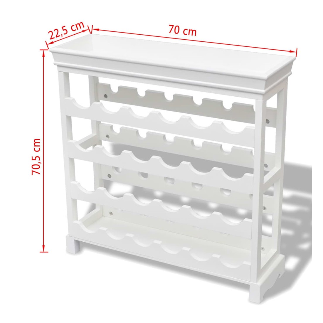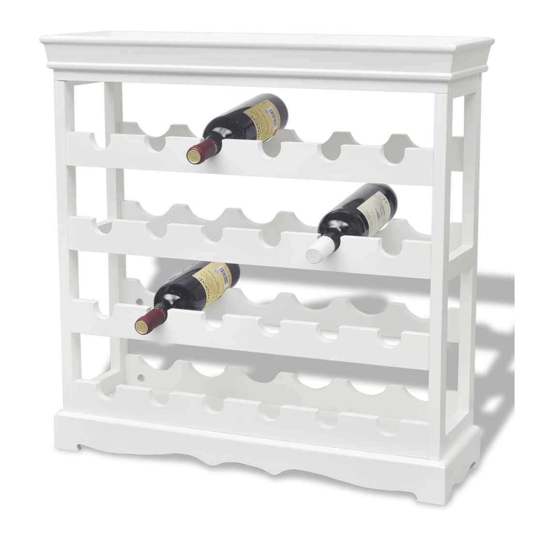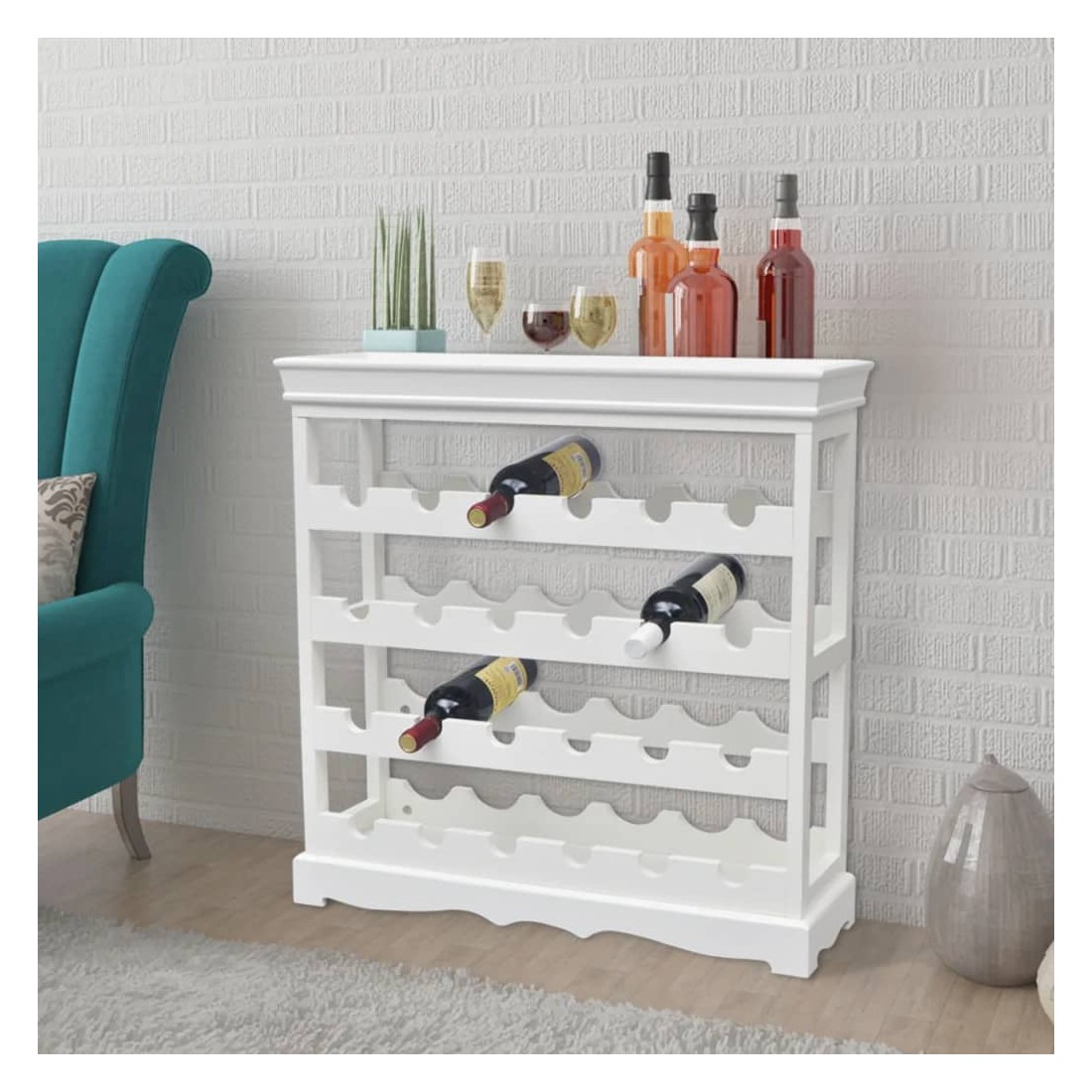 Ce casier à bouteilles de haute qualité blanc s'adapte à votre environnement de vie et vous pouvez le placer dans le salon, dans la salle à manger ou dans l'entrée. Ce casier à bouteilles ouvert vous donne amplement d'espace de stockage pour les bouteilles de vin. Les quatre étagères ont la capacité de soutenir 24 bouteilles de vin. Le plateau supérieur peut être utilisé comme zone de stockage pour la verrerie, les ouvres-bouteilles et d'autres articles. Ce casier à bouteilles simple mais élégant est sans aucun doute un must-have pour tous les amateurs de vin.
