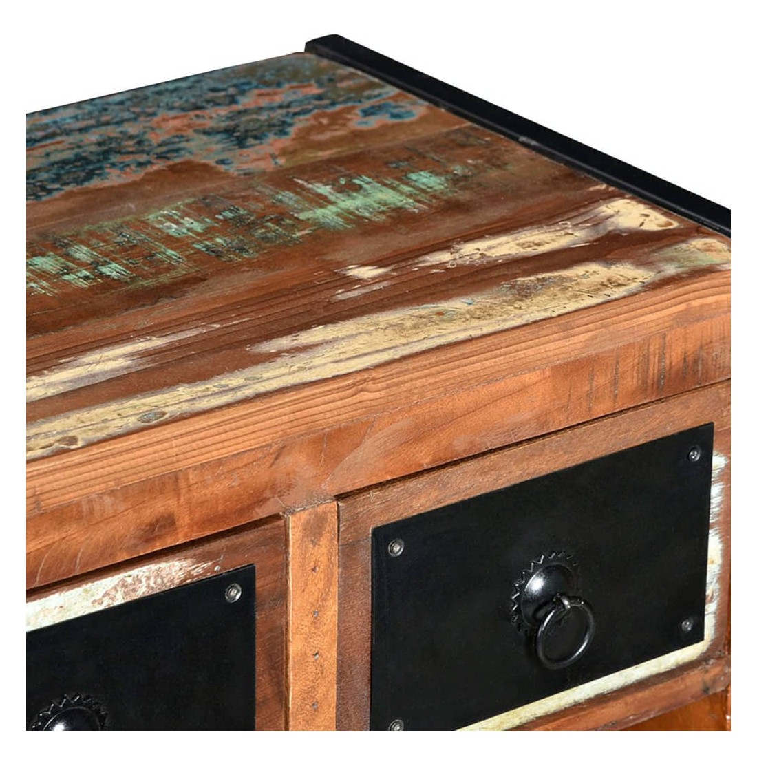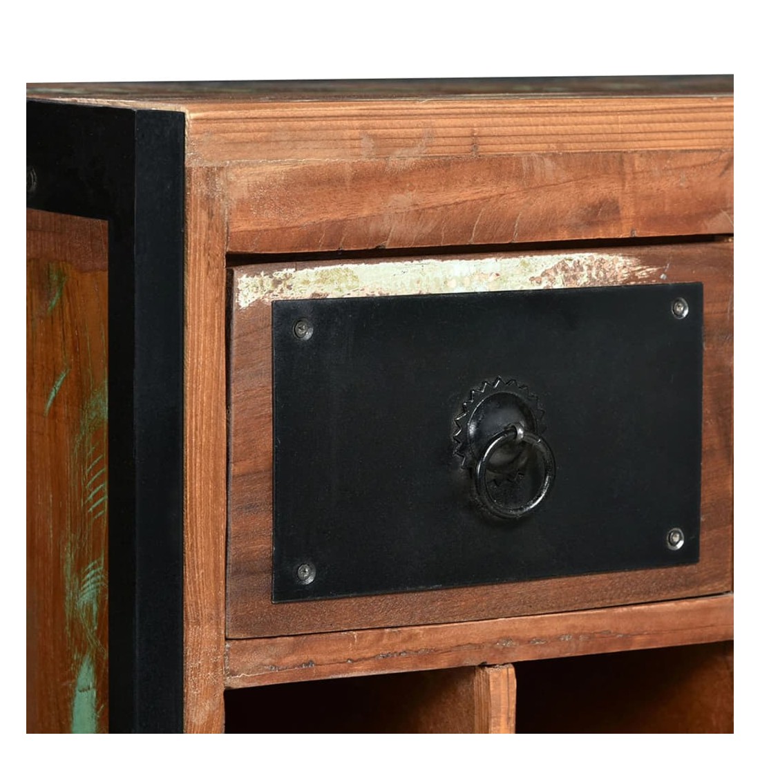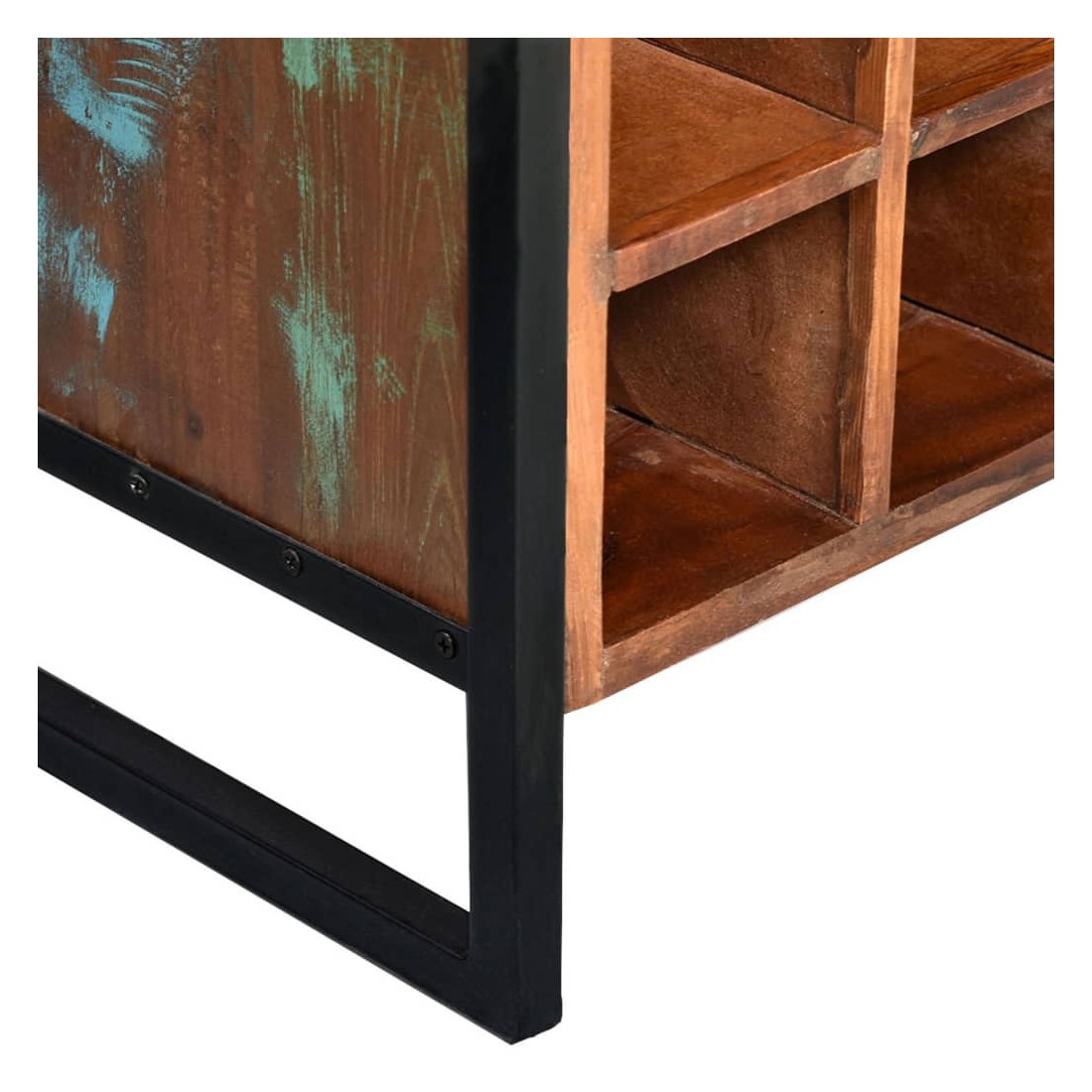 Ce casier à bouteilles en bois de style industriel est parfait pour les amateurs de vin. Cette étagère à vin élégante ajoutera une touche de charme à votre cuisine, salle à manger ou salon. Avec une capacité de 16 bouteilles et 2 tiroirs pratiques pour ranger les accessoires, le casier à bouteilles contient tout ce dont vous avez besoin pour servir un verre de vin. Ce meuble de bar est en bois de récupération qui est solide, durable et beau, et possède les caractéristiques de différents bois comme le teck, le manguier, l'acacia, etc. Chaque meuble est unique et légèrement différent l'un de l'autre. Les signes d'usure et la structure de grain visible donnent à chaque pièce un aspect unique et ajoutent à son style vintage spectaculaire. Ce casier à vin est entièrement fait à la main et chaque étape du processus est réalisée avec le plus grand soin, que ce soit le polissage, la peinture ou le laquage. L'article est déjà assemblé ; aucun assemblage n'est requis. Remarque importante : Les couleurs peuvent varier d'une pièce à l'autre, rendant chacun de nos casiers à bouteilles uniques ; la livraison est aléatoire.