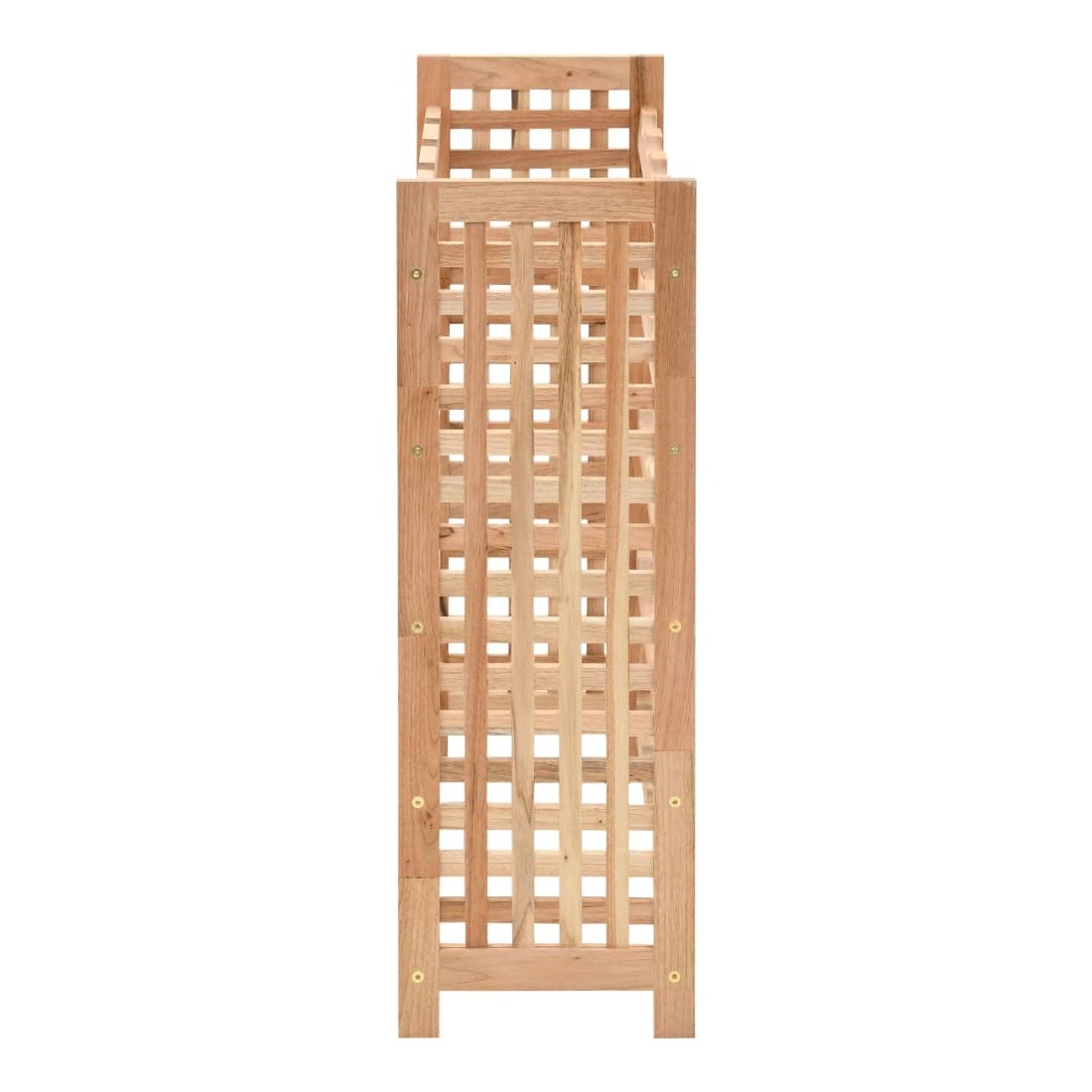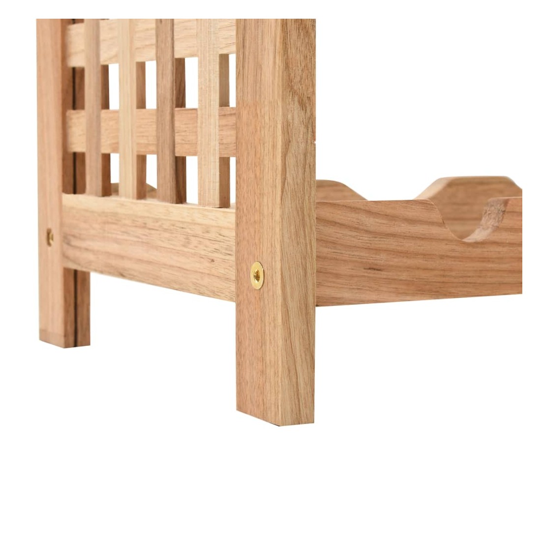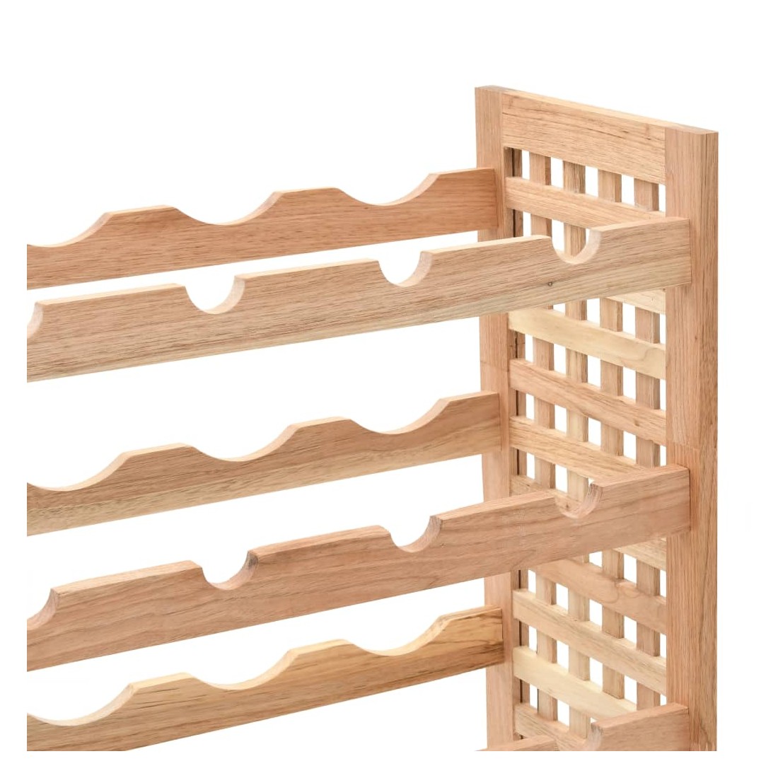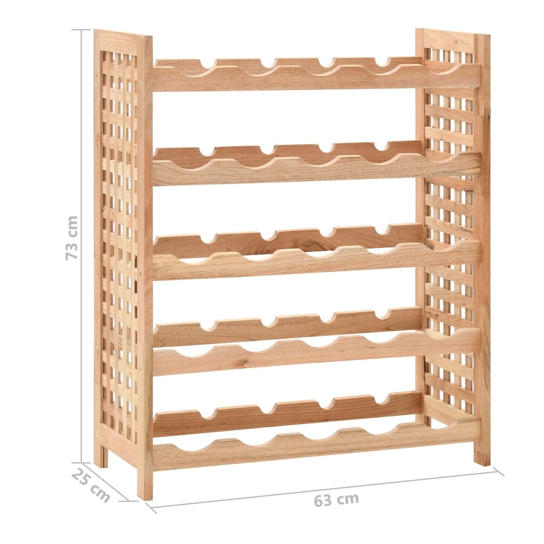 Ce casier à bouteilles à 5 niveaux, en noyer massif, apportera une touche de style naturel à votre intérieur et constituera une solution de rangement idéale pour vos bouteilles de vin. Le casier à bouteilles de vin en bois dispose de cinq étagères et peut contenir jusqu'à 25 bouteilles de vin. Ses planches latérales sont formées par la belle charpente qui maintient la ventilation du vin tout en donnant un aspect élégant au casier à bouteilles de vin. Le porte-bouteille compact et élégant s'adapte parfaitement à votre décoration intérieure. Le casier à bouteilles de vin est facile à assembler. Remarque : Le bois étant un produit naturel, les couleurs peuvent varier d'un lot à l'autre ; la livraison est aléatoire.