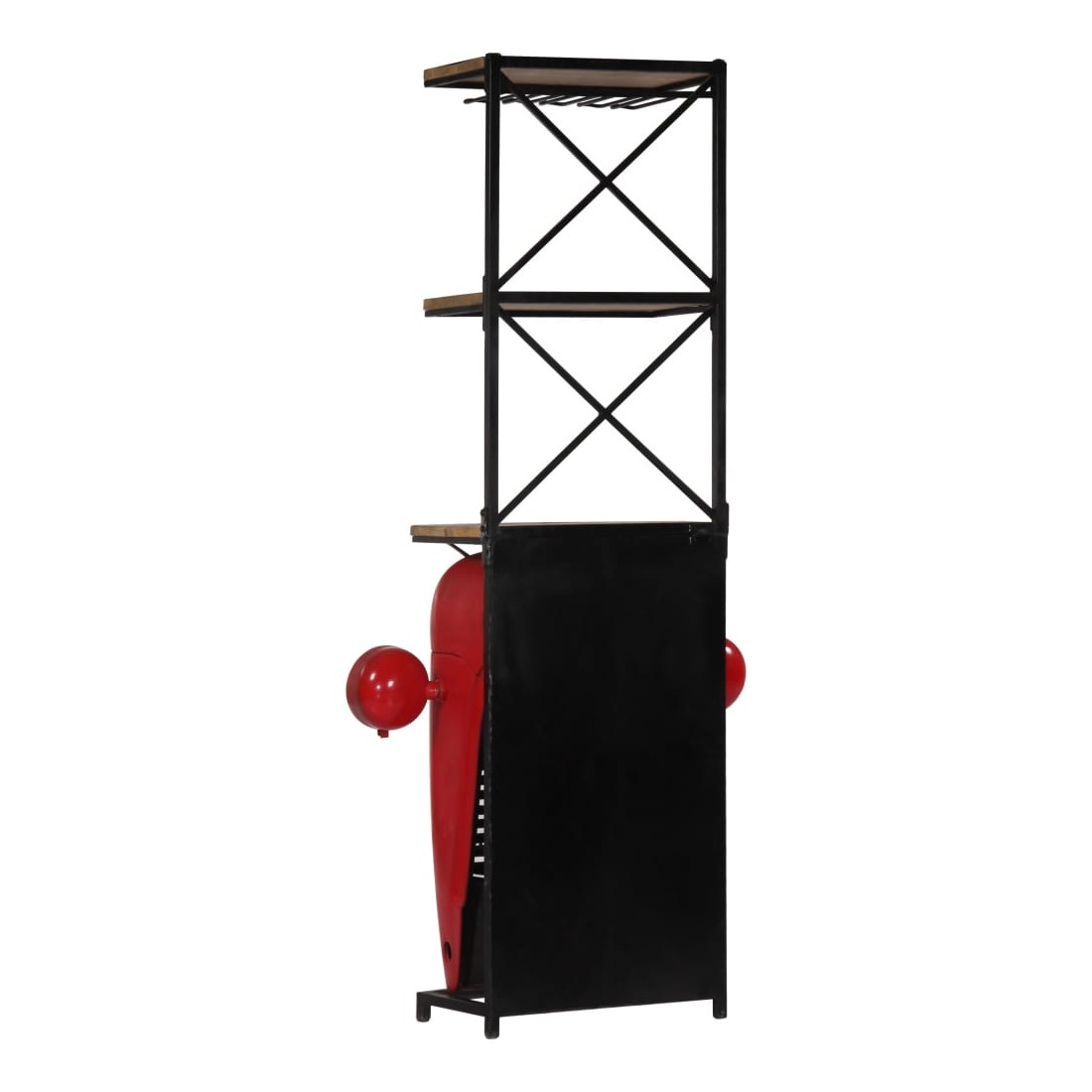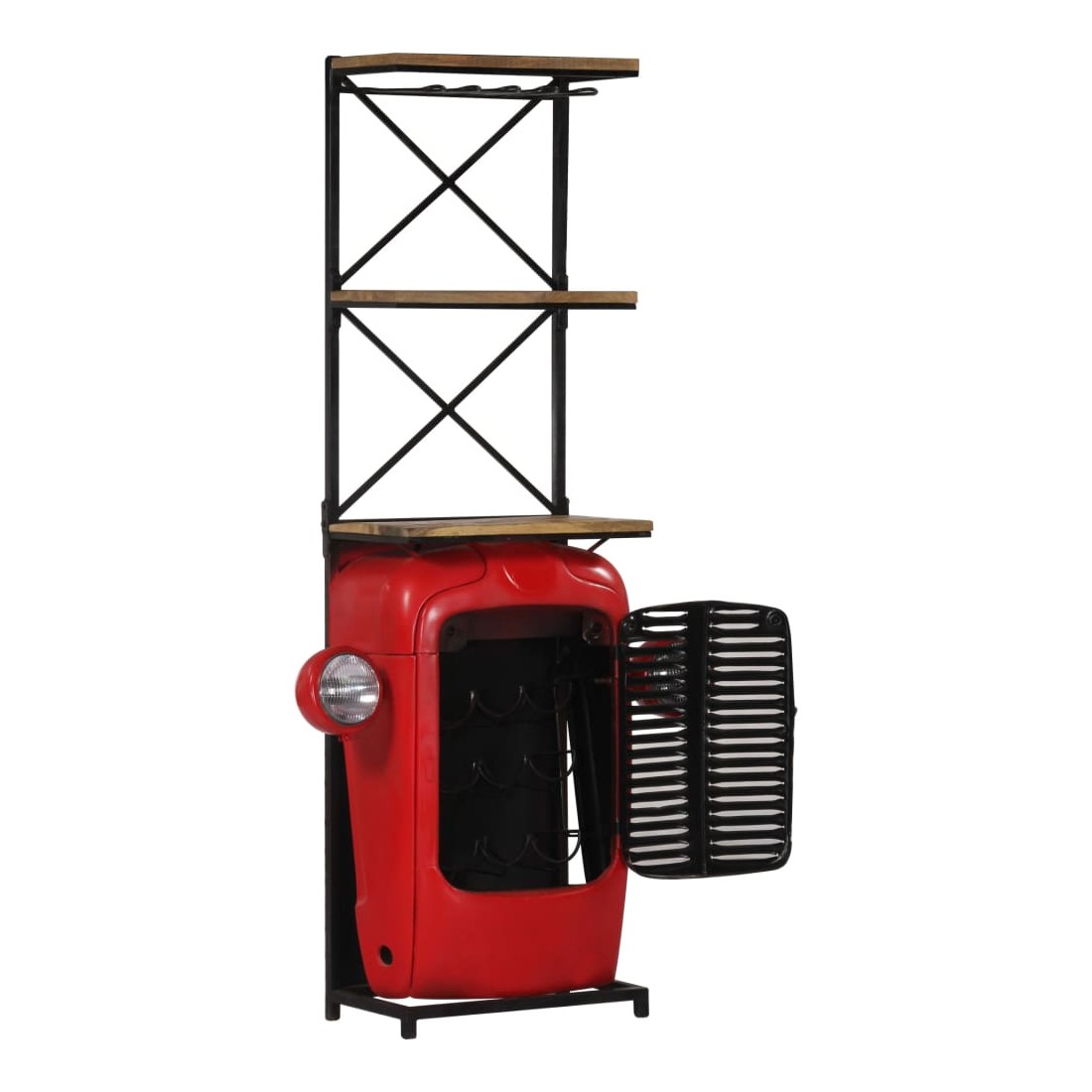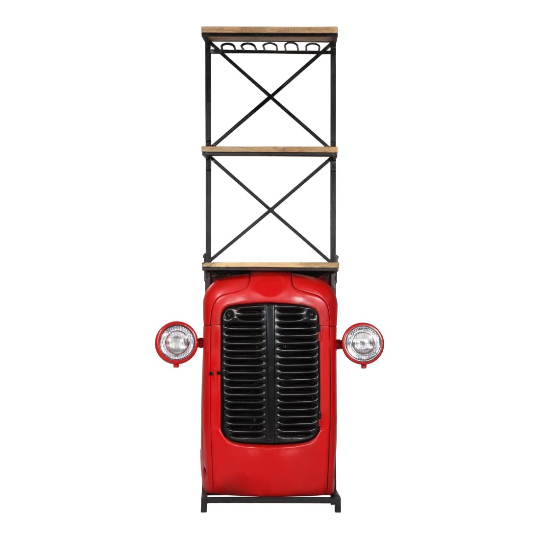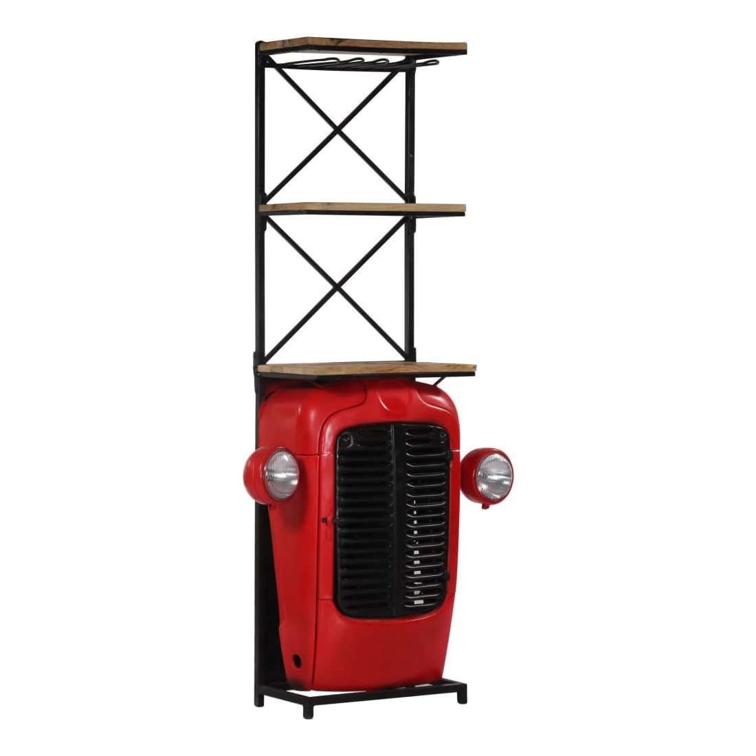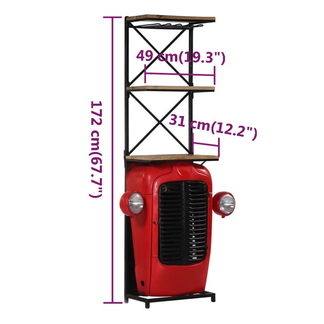 Ce casier à vin en bois sous forme de façade de tracteur est parfait pour les amateurs de vin. C'est la solution idéale pour une bonne organisation de vos vins. Cette cave à vin est faite de bois de manguier solide, un bois dur à grains denses. Le bois brut de manguier a non seulement la force de supporter le poids, mais résiste également à l'usure du temps. En outre, ce casier à vin sous forme de façade de tracteur comprend 2 étagères et 9 porte-bouteilles, offrant un espace commode pour stocker vos vins ainsi que divers autres articles. Veuillez noter que ce produit est fait d'un vrai vieux tracteur, il y a donc des imperfections sur le produit. Remarque importante : les couleurs et le grain du bois peuvent varier d'une pièce à l'autre, ce qui rend chaque pièce unique en son genre. La livraison est aléatoire, ce qui garantit l'exclusivité et l'individualité de votre produit. Attention : pour éviter qu'il ne bascule, ce produit doit être utilisé avec le dispositif de fixation murale fourni.