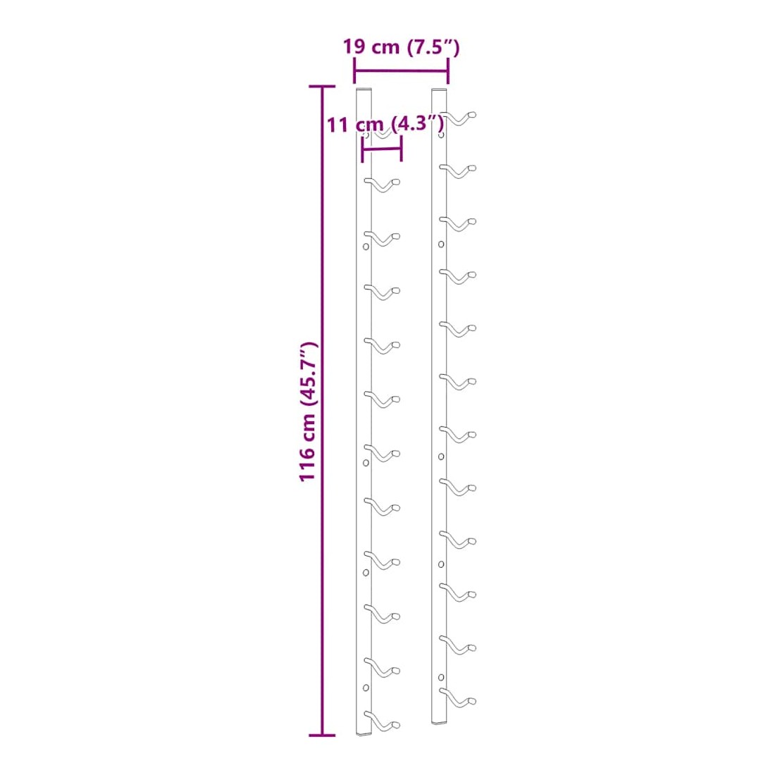 Ce casier à bouteilles mural vous aidera à ranger et à organiser vos vins préférés tout en transformant votre décoration avec un attrait haut de gamme ! Ce casier à bouteilles peut porter jusqu'à 12 bouteilles de vin. Son design simple et élégant ajoute une touche de classe moderne à votre espace de vie. Il sera également un excellent cadeau pour vos amis et vos connaissances amateurs de vin. Il est fait de fer enduit de poudre, le rendant extrêmement durable ! De plus, avec le matériel de montage inclus, le support à vin peut être facilement fixé au mur. Veuillez noter que les bouteilles de vin ne sont pas incluses dans la livraison.