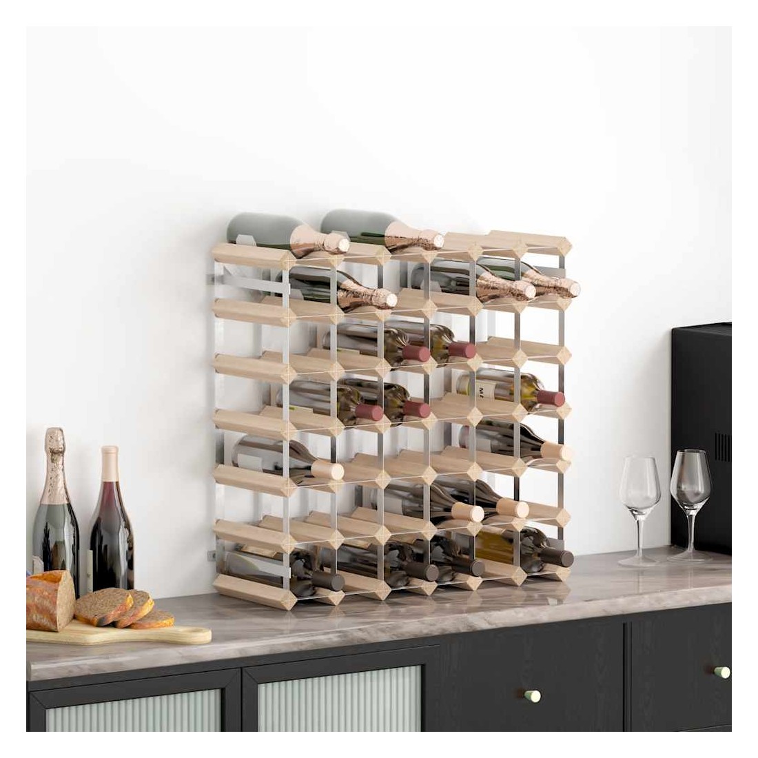 • Porte jusqu'à 42 bouteilles de vin (bouteilles non incluses)