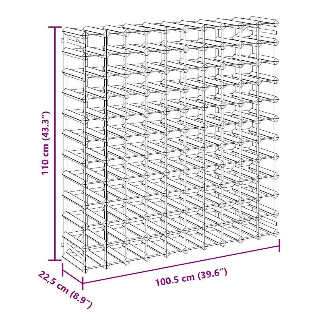 Rangez, vieillissez et affichez votre vin avec style avec ce casier à vin en bois moderne ! Il transformera votre décoration en un attrait l haut de gamme. Ce casier à bouteilles peut contenir jusqu'à 120 bouteilles de vin. Sa conception simple et propre ajoute une touche de charme rustique à votre espace de vie. Il sera également un excellent cadeau pour vos amis et connaissances aimant le vin. De plus, fabriqué en acier galvanisé et en bois massif, il est extrêmement durable ! Grâce au matériel de montage fourni, le support à vin est facile à assembler. Veuillez noter que les bouteilles de vin ne sont pas incluses dans la livraison.