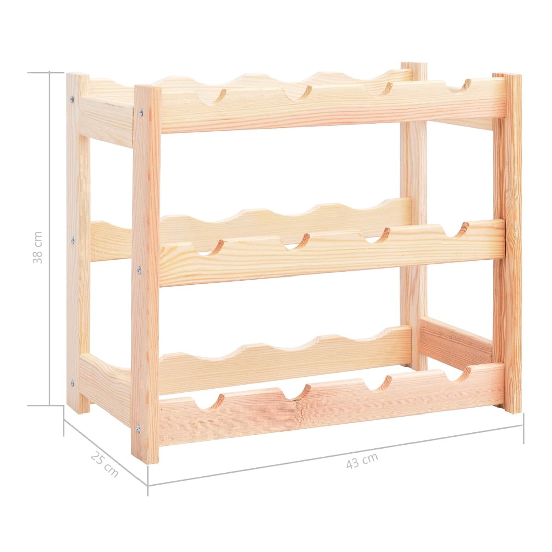 Rangez, vieillissez et affichez votre vin avec style avec ce casier à vin en bois massif ! Son design simple et épuré ajoute une touche de charme rustique à votre espace de vie. L'étagère à vin peut contenir jusqu'à 12 bouteilles de vin. Fabriquée en pinède solide, elle est extrêmement durable ! Vous pouvez conserver sa couleur naturelle ou ajouter une couche de peinture ou une autre finition dans votre couleur préférée. Grâce aux matériaux de montage inclus, notre support de vin est facile à assembler.