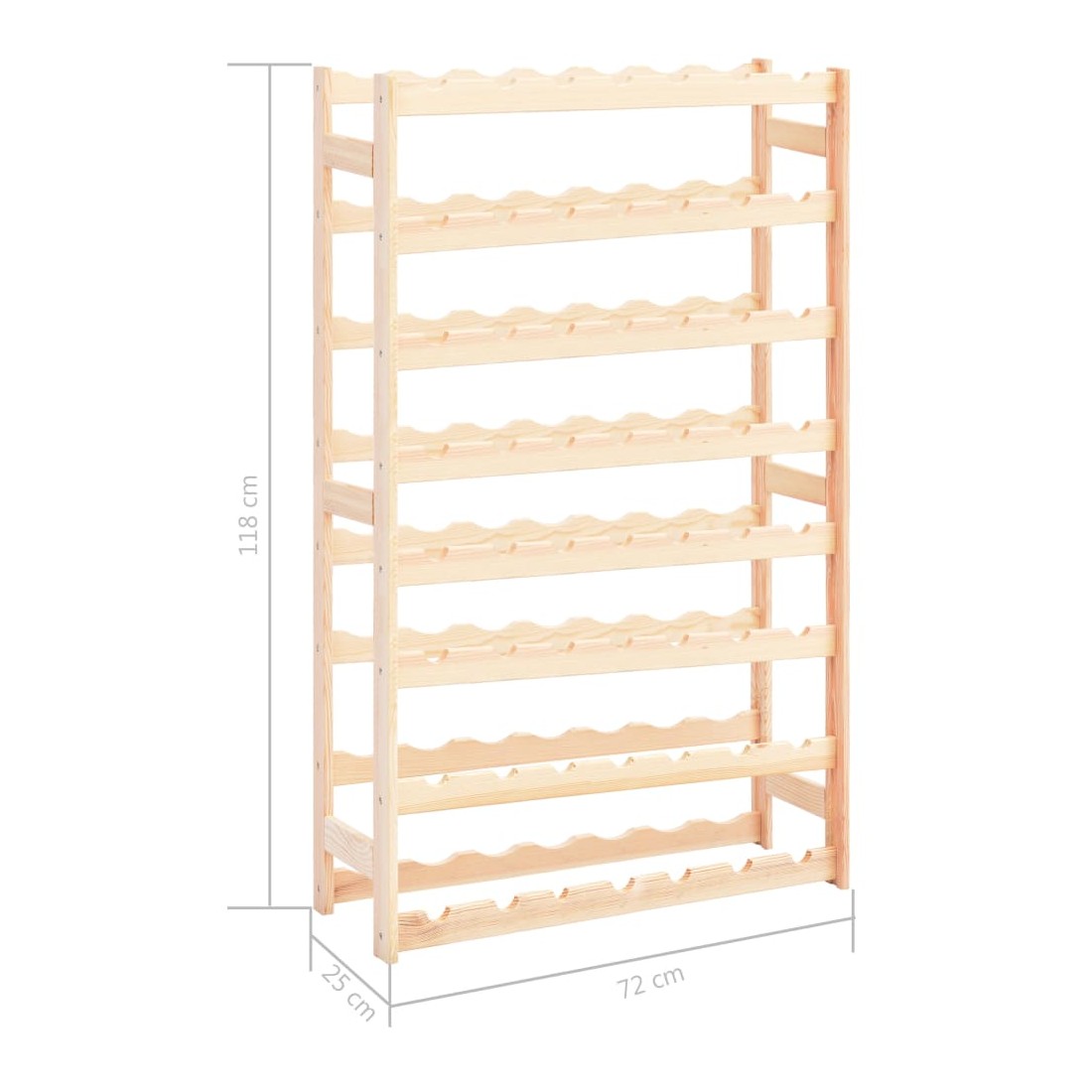 Rangez, vieillissez et affichez votre vin avec style avec ce casier à vin en bois massif ! Son design simple et épuré ajoute une touche de charme rustique à votre espace de vie. L'étagère à vin peut contenir jusqu'à 56 bouteilles de vin. Fabriquée en pinède solide, elle est extrêmement durable ! Vous pouvez conserver sa couleur naturelle ou ajouter une couche de peinture ou une autre finition dans votre couleur préférée. Grâce aux matériaux de montage inclus, notre support de vin est facile à assembler.