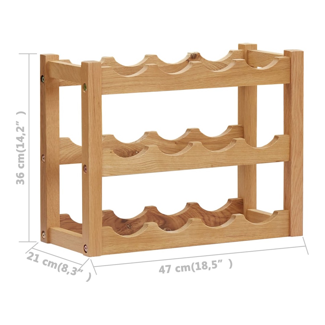 Notre casier à vin en bois, au design rustique, est une solution parfaite pour organiser et ranger vos vins facilement. Ce support à vin peut contenir jusqu'à 12 bouteilles de vin. Il est fabriqué en bois de chêne massif avec une finition naturelle, ce qui le rend assez stable et facile à entretenir. Le porte-vin est autoportant de sorte qu’il puisse être placé dans n’importe quel espace que vous voulez selon votre convenance. C’est un choix idéal pour le donner comme cadeau à vos amis et connaissances amateurs de vin. Veuillez noter que les bouteilles de vin ne sont pas incluses dans la livraison.