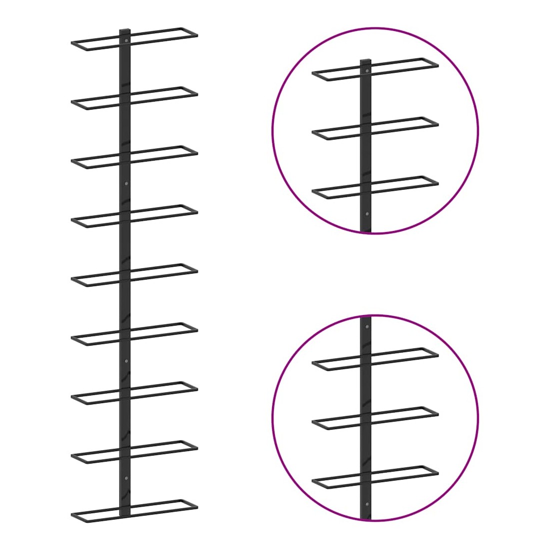 Ce casier à bouteilles mural au design simple mais élégant, ajoute une touche de modernité à votre espace de vie. Ce casier à bouteilles peut contenir jusqu'à 9 bouteilles de vin. Il est fabriqué en fer enduit de poudre, ce qui le rend extrêmement durable et facile à entretenir. C'est un choix idéal pour faire un cadeau à vos amis et connaissances amateurs de vin. De plus, avec les matériaux de montage inclus, ce casier à vin peut être facilement fixé au mur. Il est également facile à assembler. Veuillez noter que les bouteilles de vin ne sont pas incluses dans la livraison.