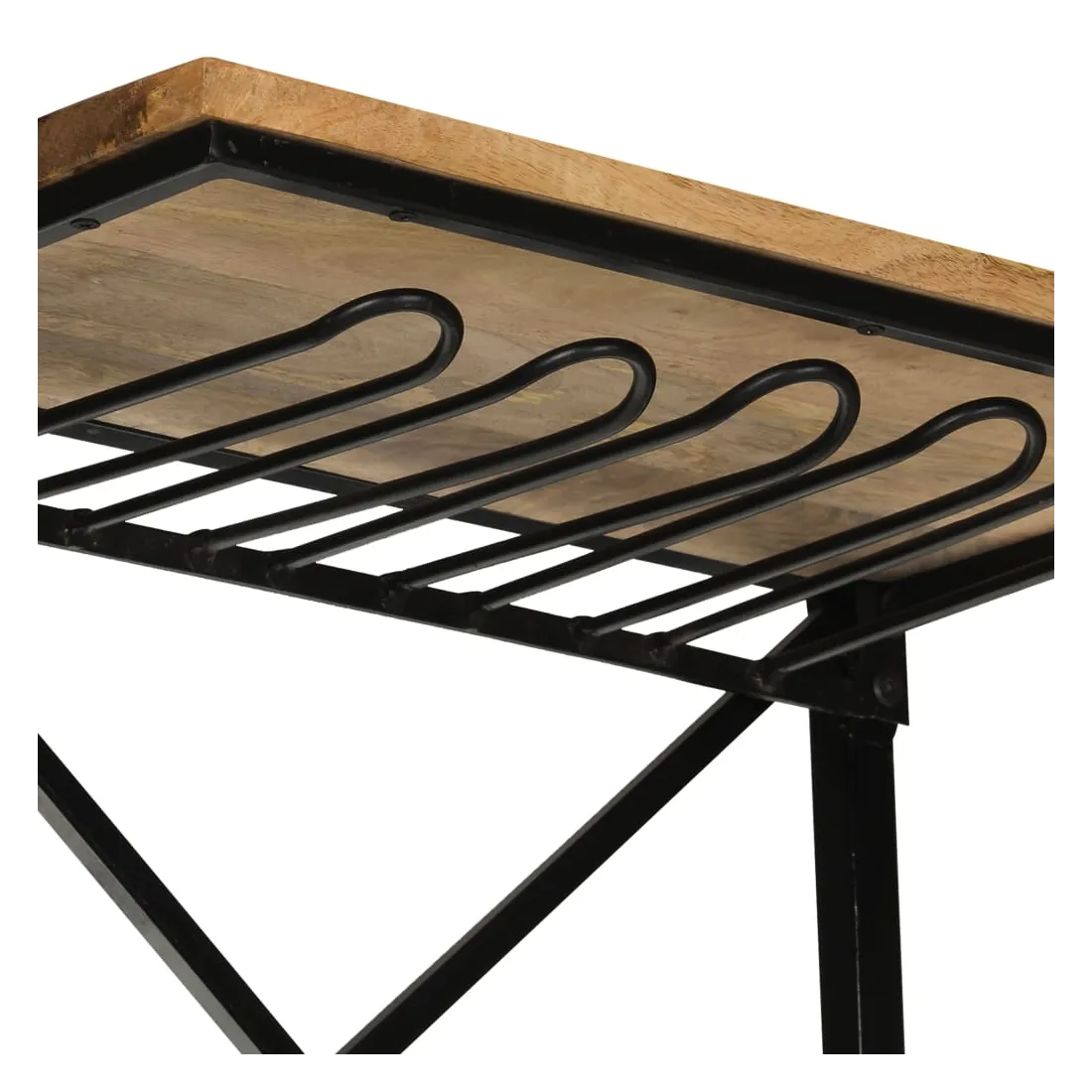 - Matériau : bois de manguier massif avec une finition naturelle, métal