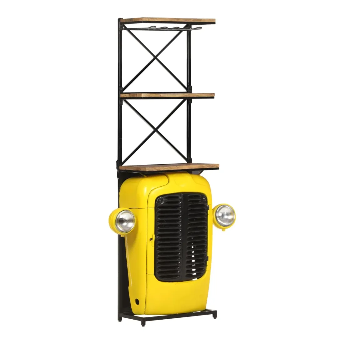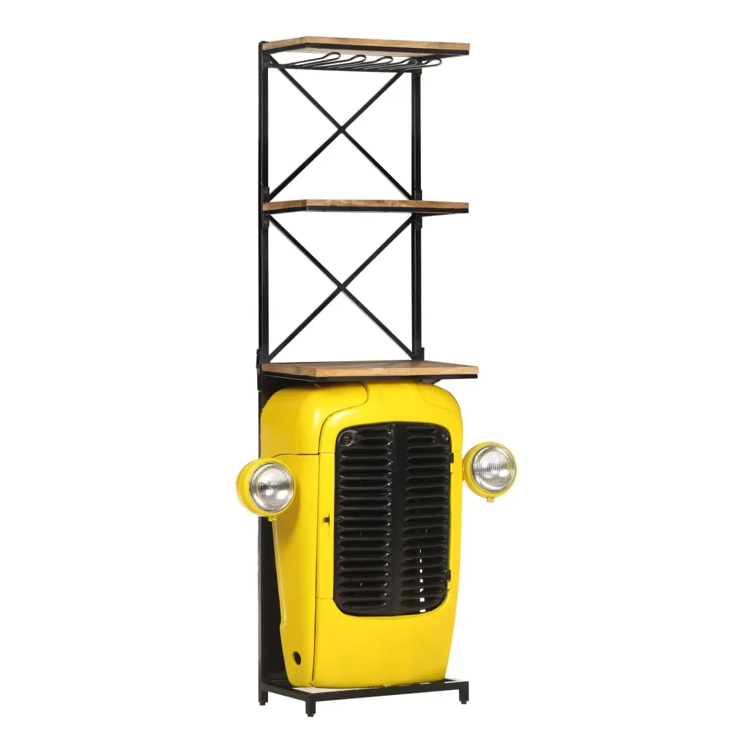 Cette armoire à vin en forme de tracteur en bois est parfaite pour les amateurs de vin. Il est une solution idéale pour garder vos vins bien organisés. Ce cave à vin est fait de bois de manguier massif, un bois franc avec des grains denses. Le bois de manguier massif a la force de supporter le poids et de résister à l'usure du temps. De plus, cette armoire en forme de tracteur dispose de 2 étagères et de 9 porte-bouteilles, offrant un espace confortable pour stocker vos vins ainsi que divers autres articles. Veuillez noter que ce produit est fait d'un vrai vieux tracteur, il y a donc des imperfections sur l'article. Remarque importante : les couleurs et le grain du bois peuvent varier d'une pièce à l'autre, ce qui rend chaque pièce unique en son genre. La livraison est aléatoire, ce qui garantit l'exclusivité et l'individualité de votre produit. Attention : pour éviter qu'il ne bascule, ce produit doit être utilisé avec le dispositif de fixation murale fourni.