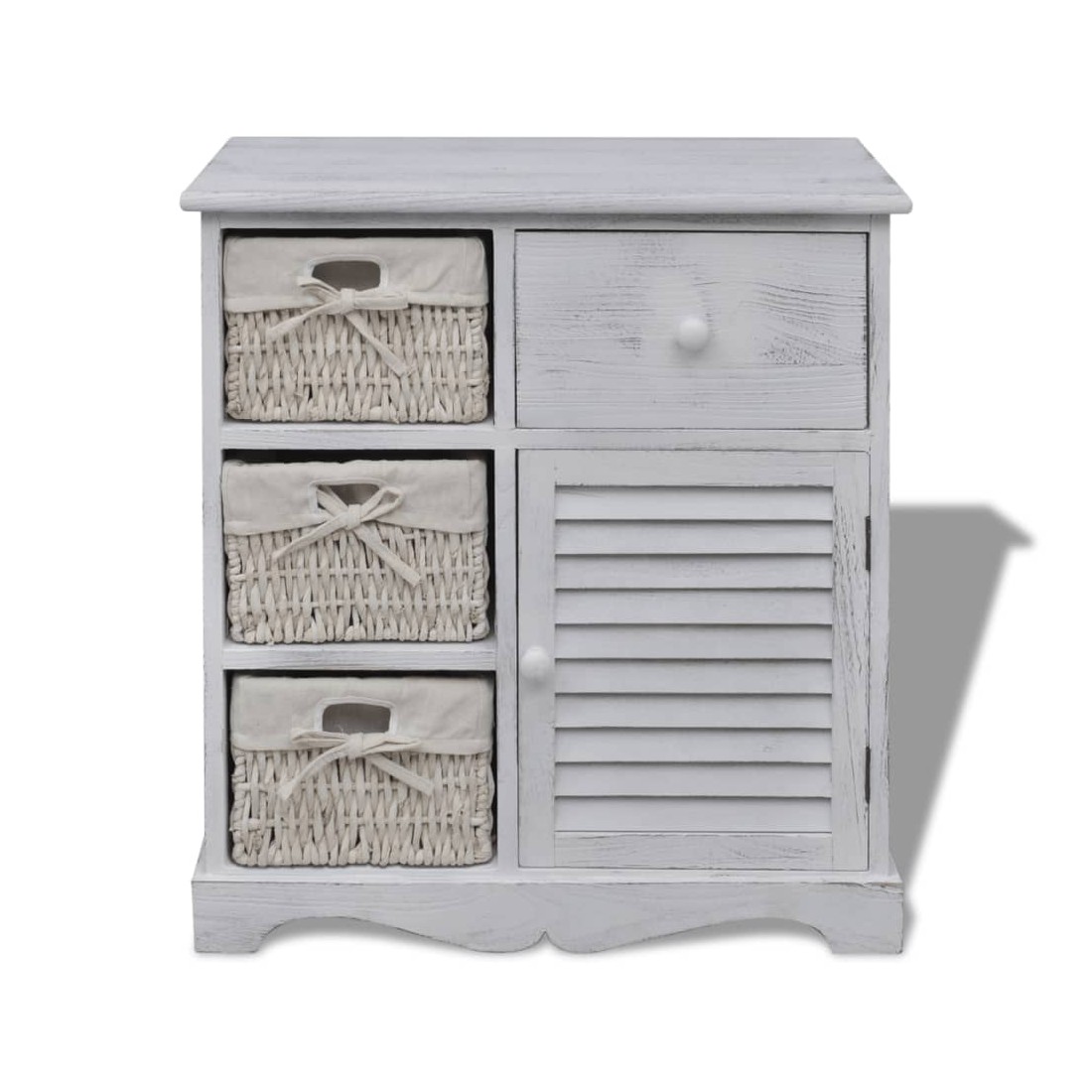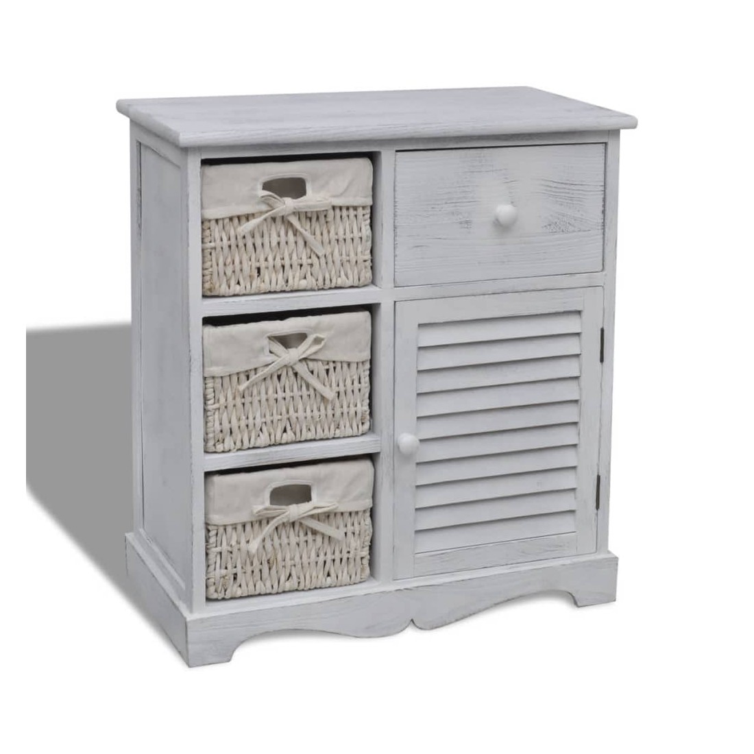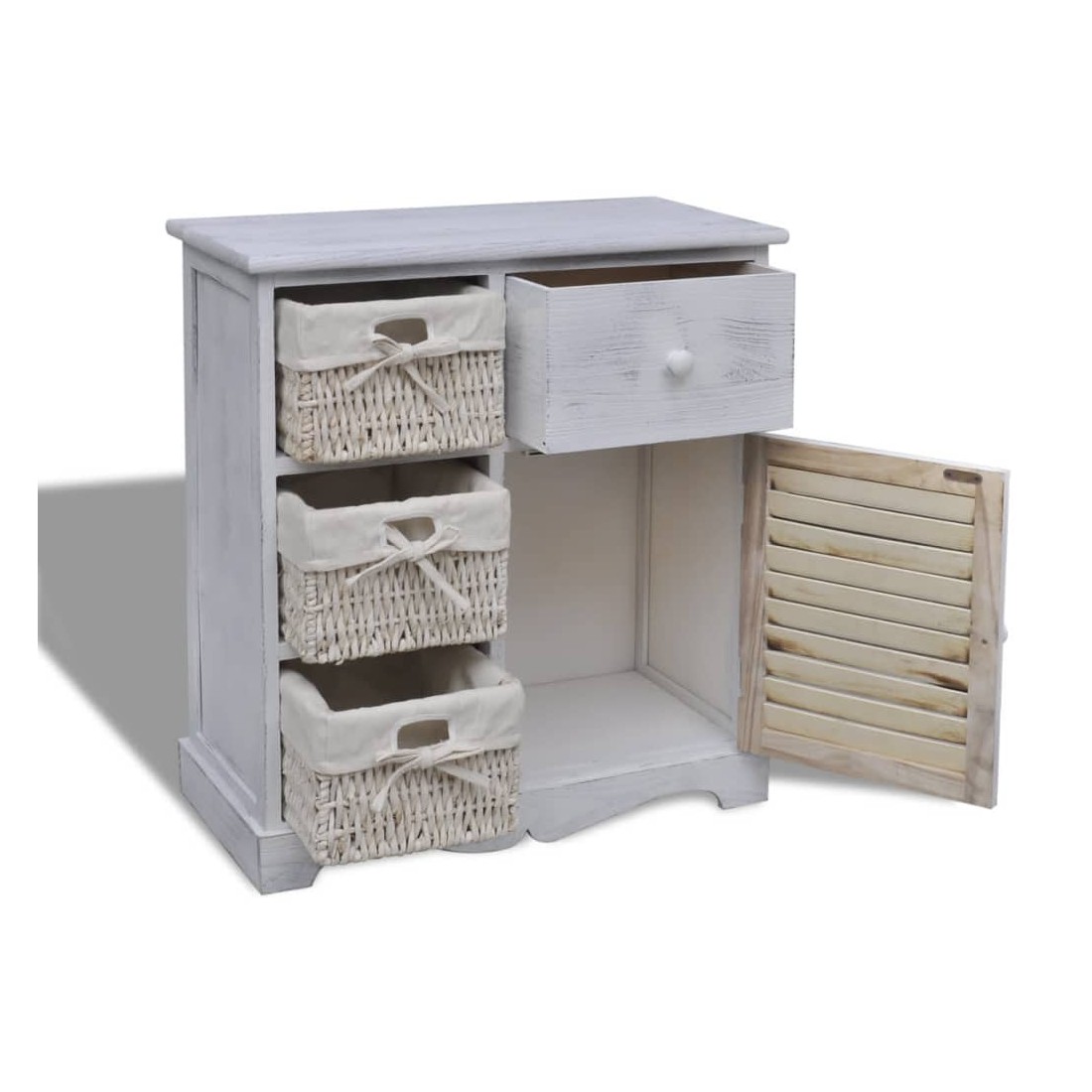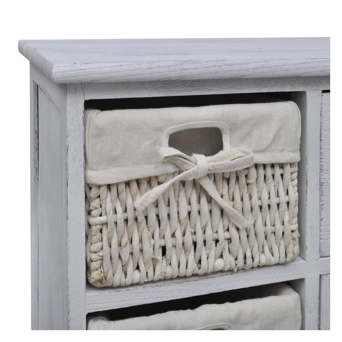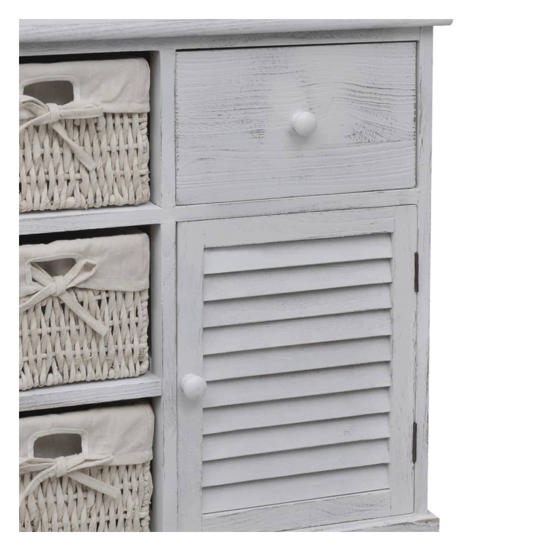 Armoire en bois 3 paniers gauches en tissage Blanc