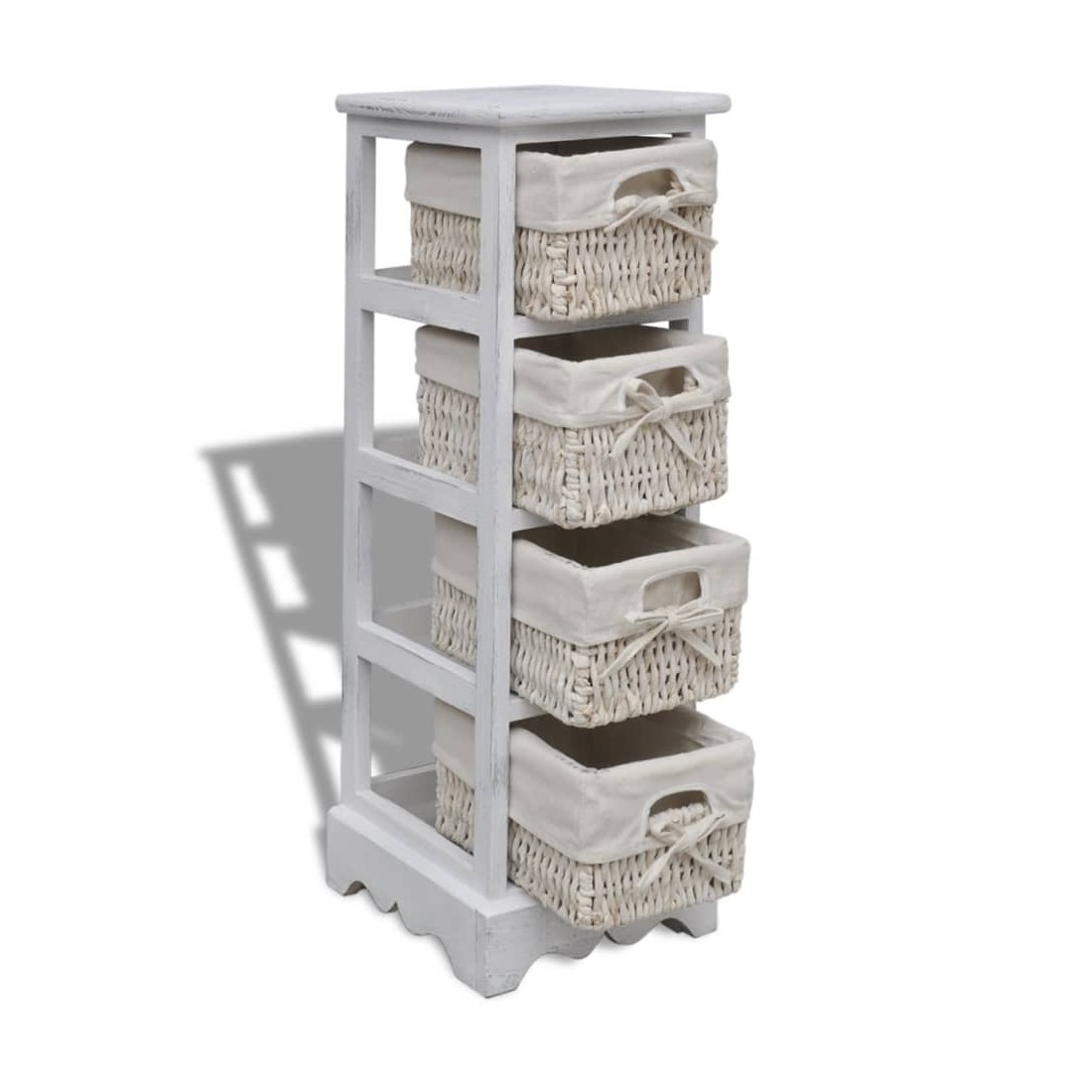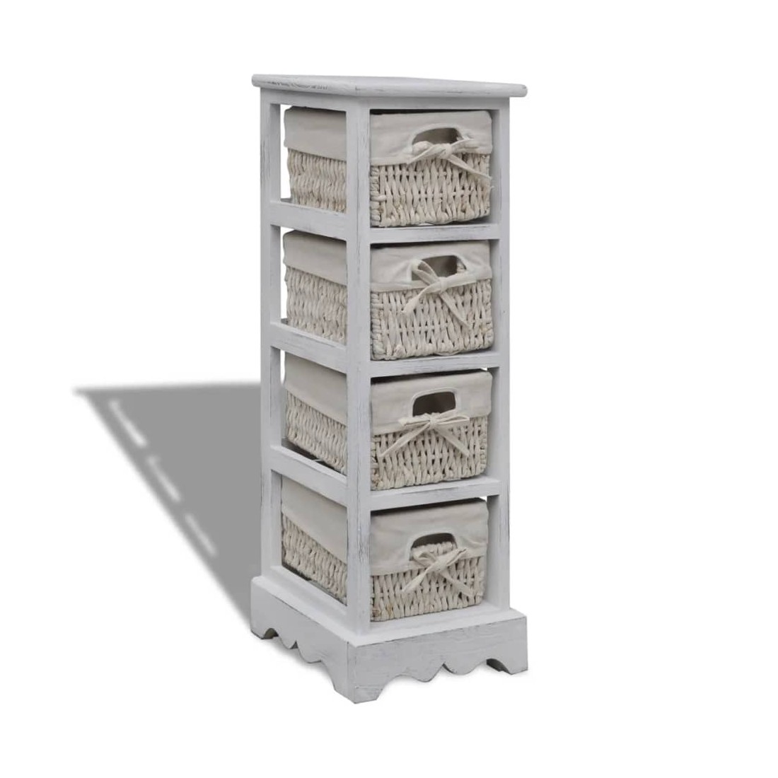 Ce magnifique support de rangement en bois de haute qualité présente un design simple mais élégant. Il stocke non seulement vos affaires mais améliore également le décor de votre chambre. Livré avec quatre paniers, ce support en bois durable vous offre suffisamment d'espace pour ranger vos objets de valeur et, en même temps, apporte un style campagnard à votre pièce. Notre support en bois sera sûrement l'un de vos meubles préférés dans n'importe quelle pièce. Attention : pour éviter qu'il ne soit renversé, ce produit doit être utilisé avec le dispositif de fixation au mur fourni.