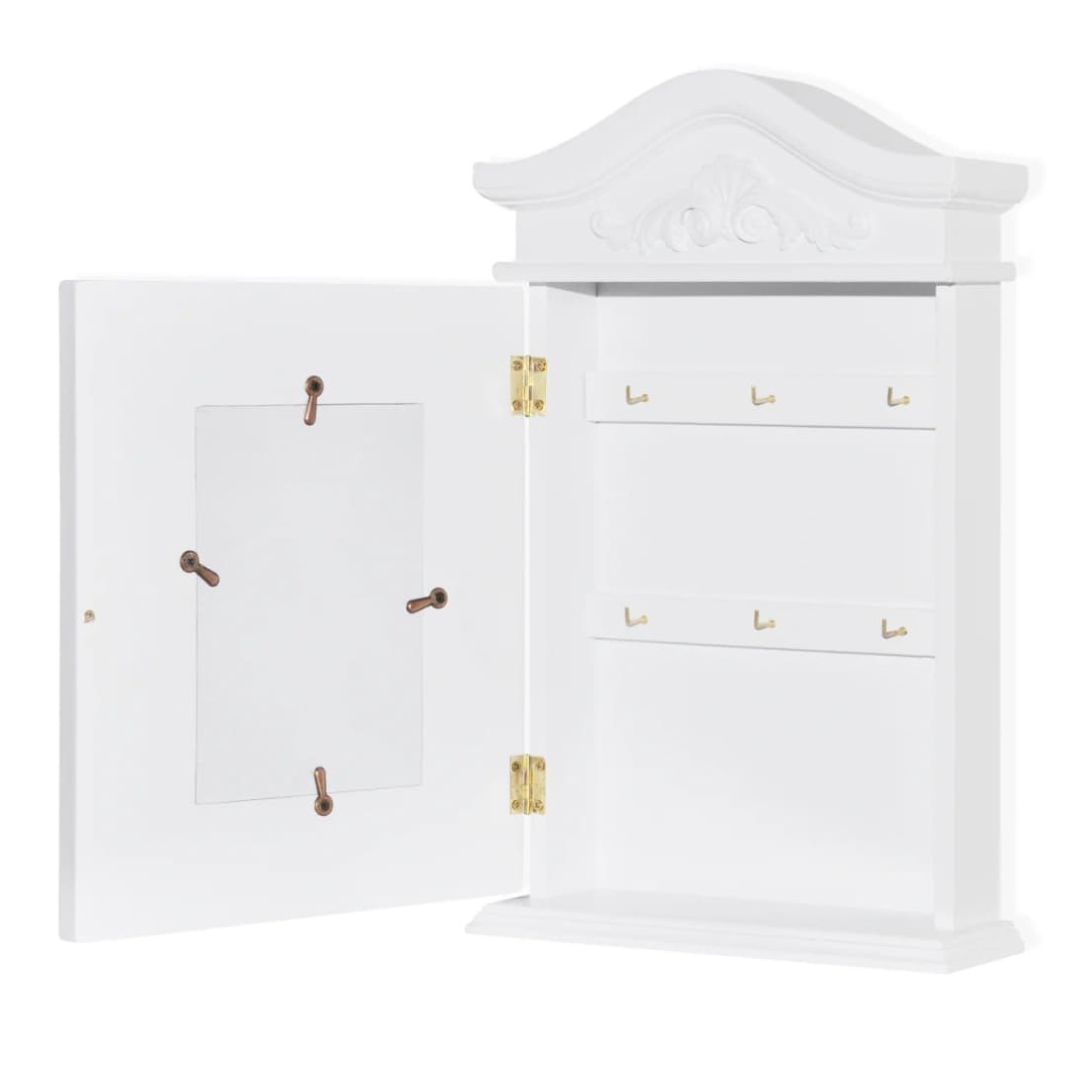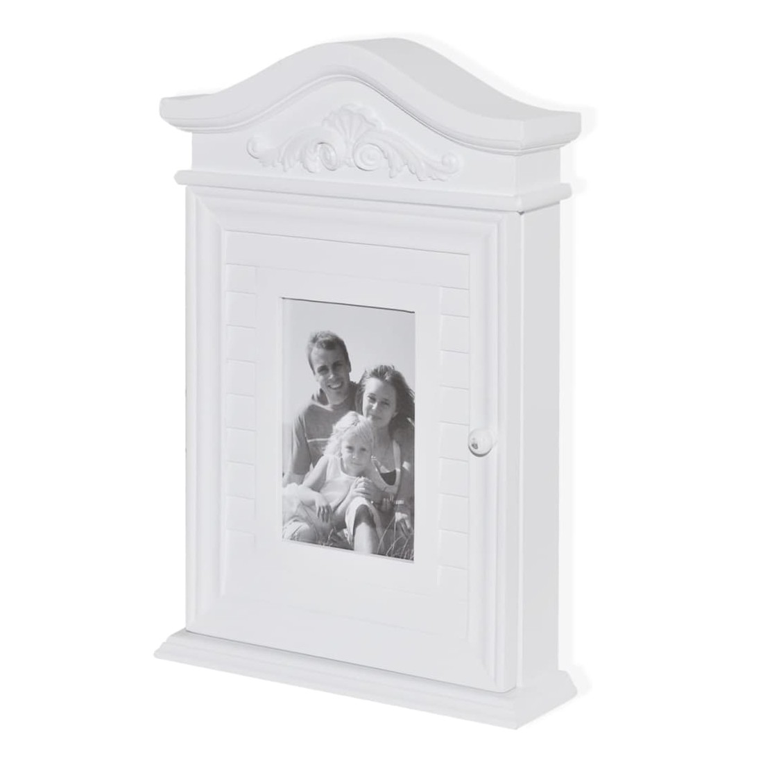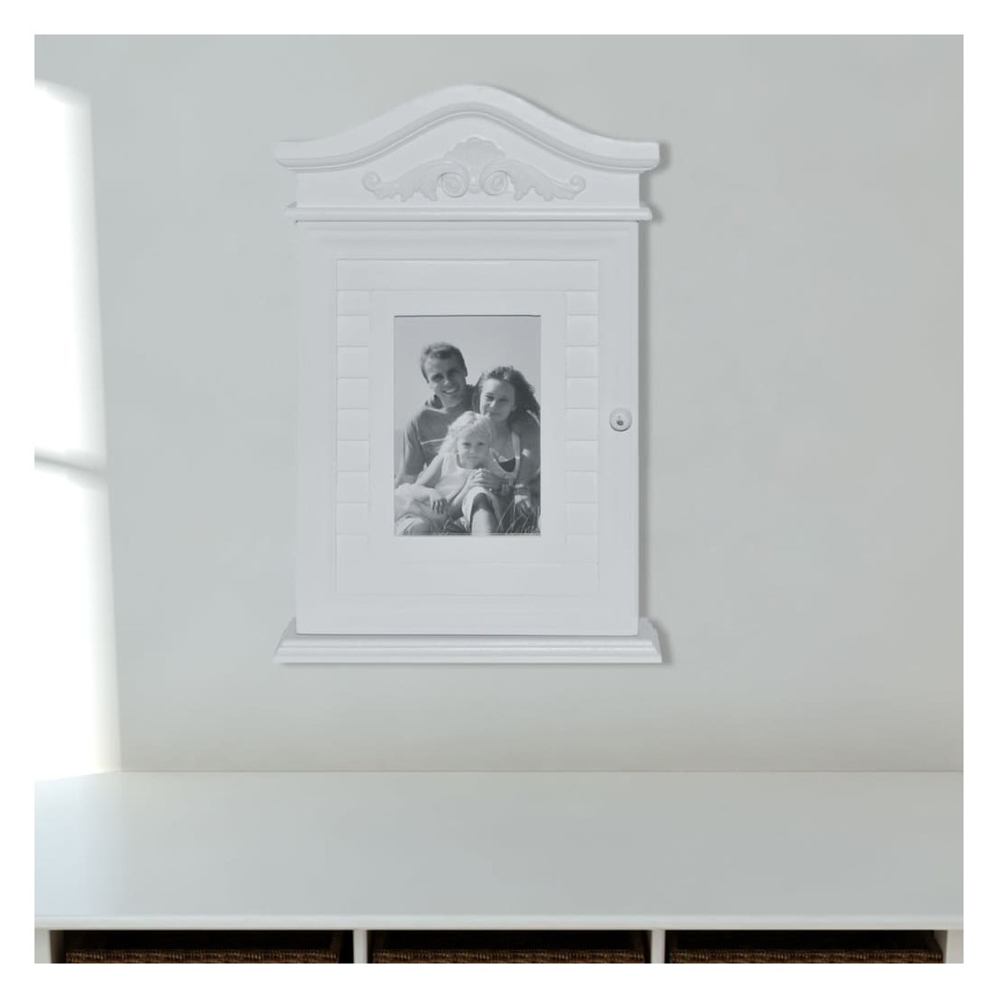 Cette armoire à clés, dotée d'un cadre photo en verre, est une aide parfaite pour organiser vos clés. Les six crochets de fer à l'intérieur de l'armoire sont conçus pour accrocher des clés ou d'autres pièces. Étant donné qu'elle est facilement montée sur le mur, notre armoire à clés sera certainement un excellent supplément à vos cuisines, couloirs et / ou vérandas. Cette armoire à clés est construite en MDF et de pinède de haute qualité avec une finition peinte en blanc pour plus de durabilité, ce qui vous donne des années de service.
