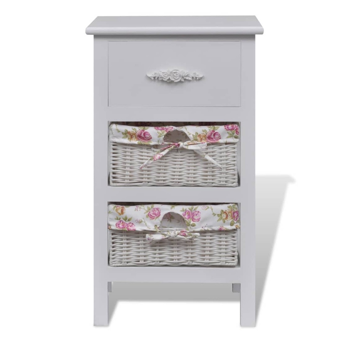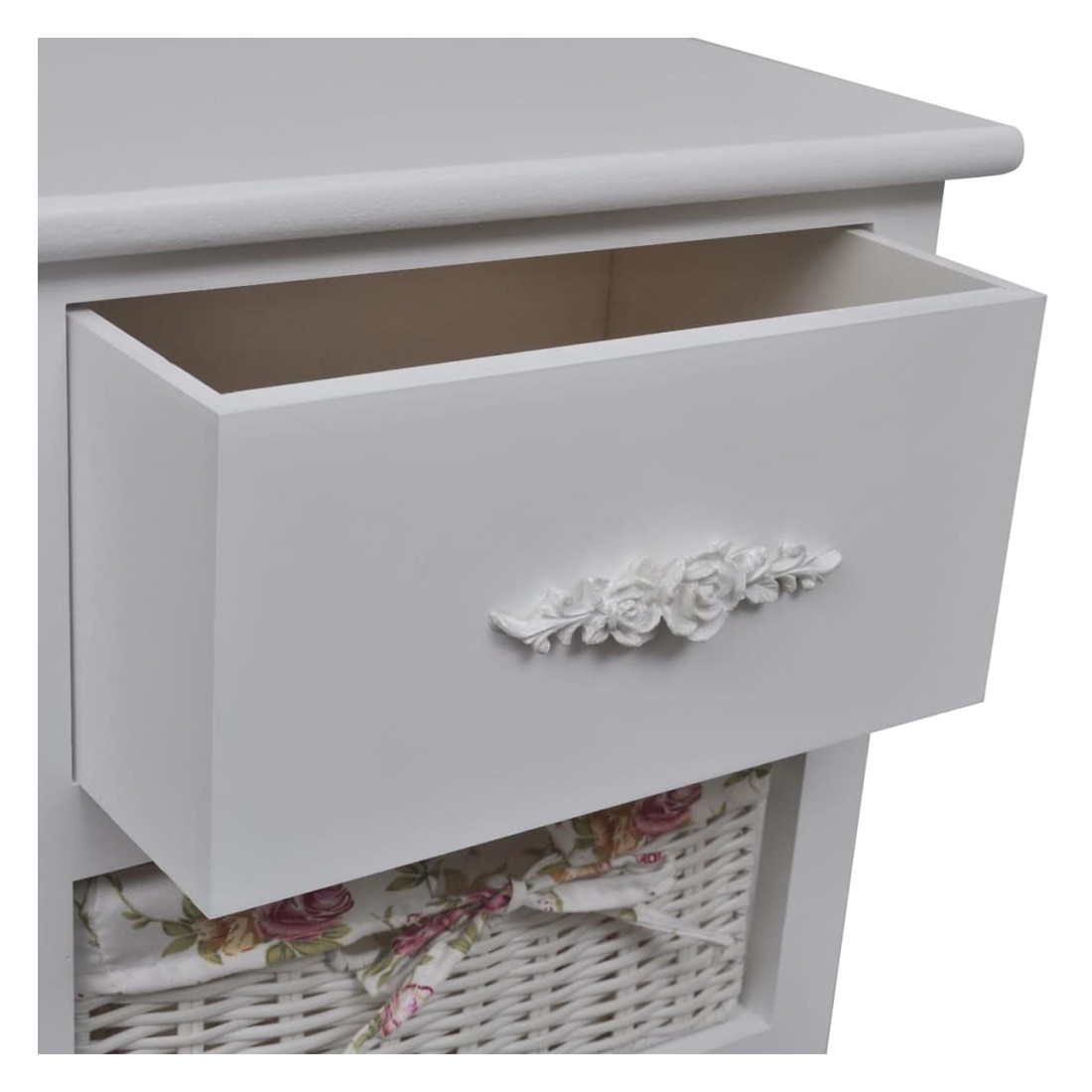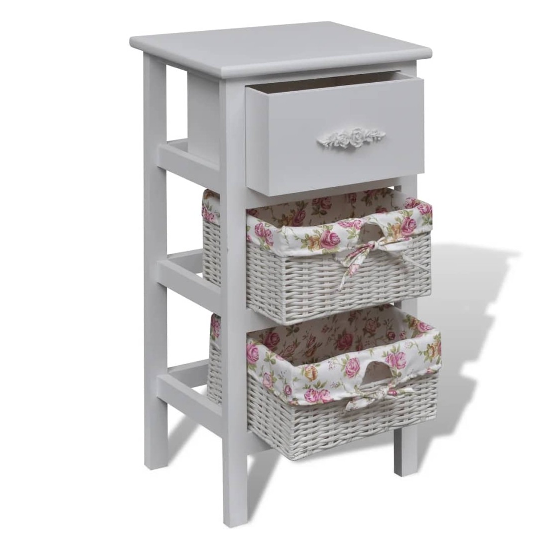 Cette armoire en bois avec un tiroir et deux paniers, en bois de haute qualité, a un design simple et élégant. Il tiendra non seulement vos choses mais ajoutera également une touche romantique à votre décor. Avec un tiroir et deux paniers, cette armoire en bois durable a amplement d'espace pour ranger vos objets de valeur. Son cadre en bois a un panneau supérieur robuste sur lequel vous pouvez mettre des objets décoratifs. Notre armoire en bois attirera tous les regards dans n'importe quelle pièce.