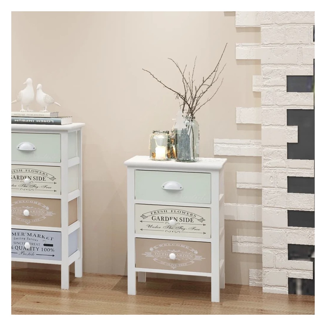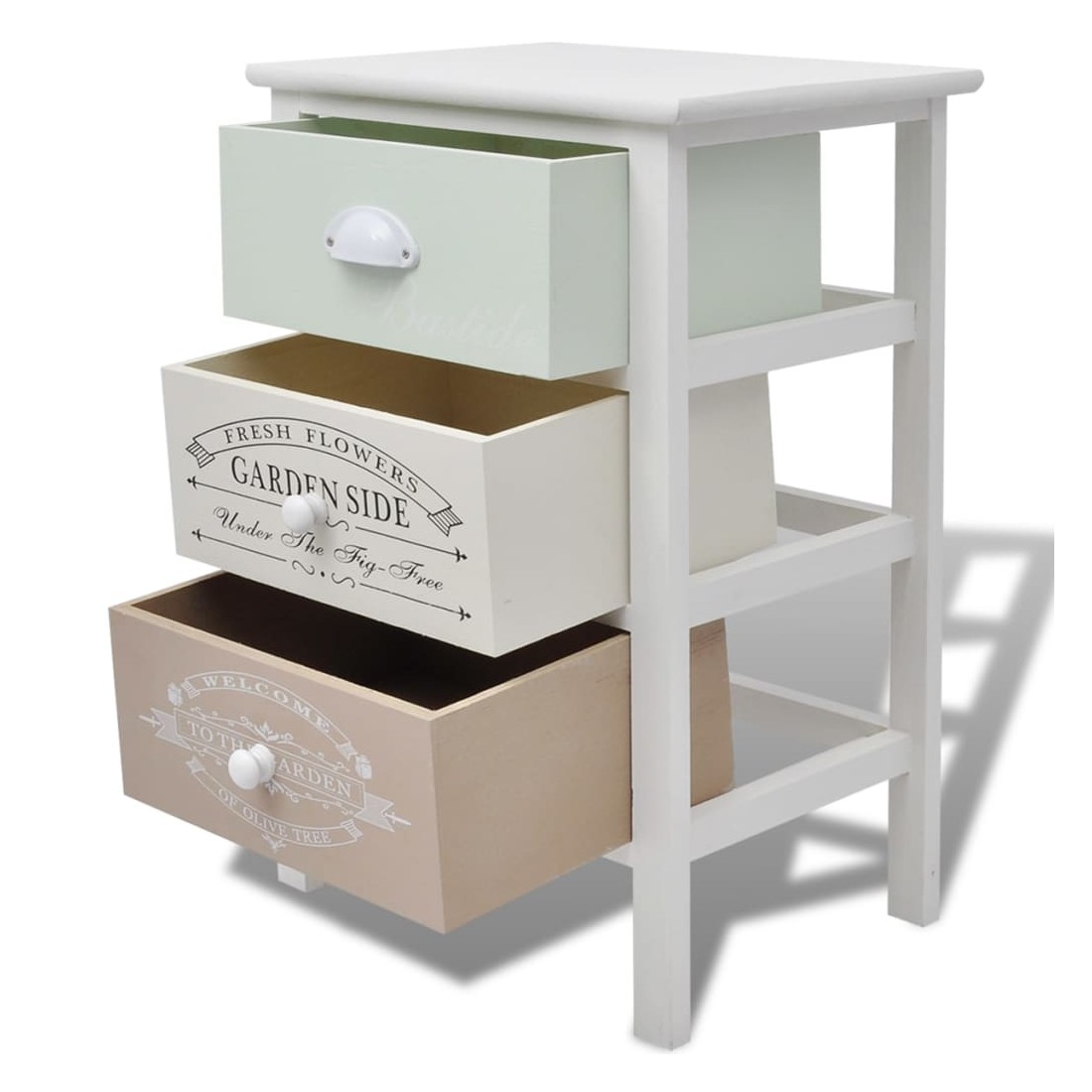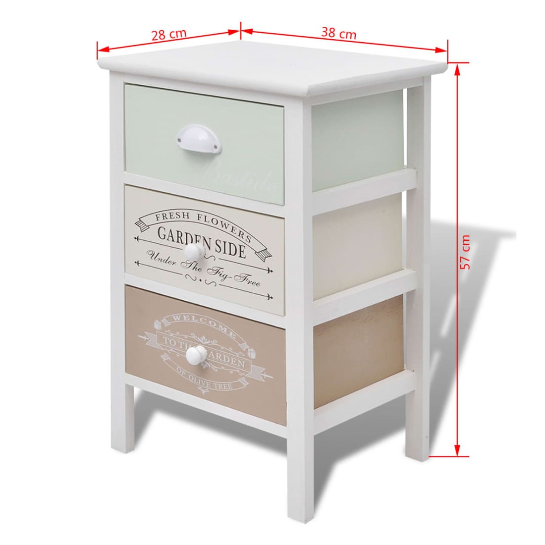 Ajoutez une touche de charme rustique à votre maison avec cet armoire de rangement chic en style français classique ! Cette armoire à tiroirs est dotée de 3 tiroirs coulissants qui fournissent un vaste espace de rangement pour vos effets personnels et gardent votre chambre rangée. Les tiroirs avec des gravures d'époque ajoutent du charme rural à votre armoire. Les tiroirs sont échangeables. Vous pouvez placer également des photos, des livres et des plantes en pot au-dessus de l'armoire de hall. Fabriquée en matériaux de haute qualité, l'armoire latérale est durable et facile à nettoyer.