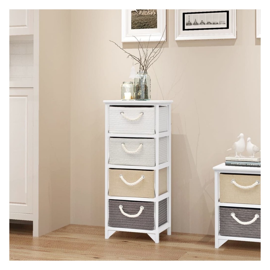 - 4 tiroirs avec poignée à cordon