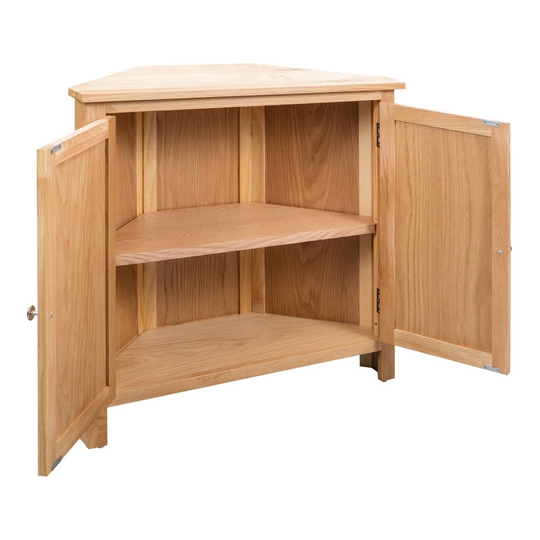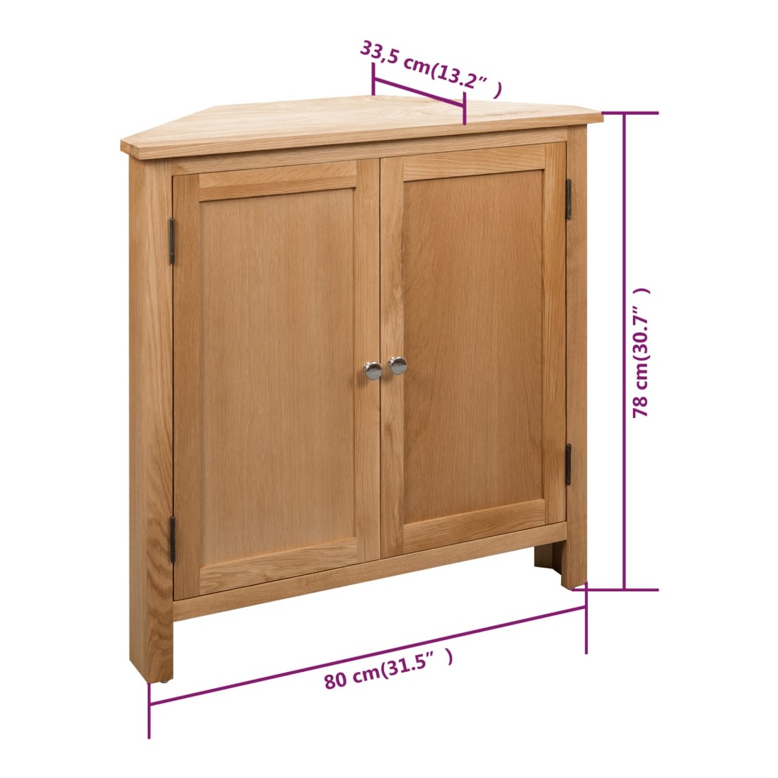 Cette armoire d'angle en bois sera un supplément pratique ainsi que décoratif à votre décoration intérieure. Fabriqué en bois de chêne massif et en MDF avec placage de chêne, ce meuble est robuste et durable et s’intégrera parfaitement dans tous les coins à 90 degrés. Le plateau robuste est idéal pour placer des objets décoratifs comme des vases ou des paniers de fruits. Le meuble offre un grand espace de rangement pour ranger divers articles ménagers. L'armoire à tiroirs est facile à assembler.